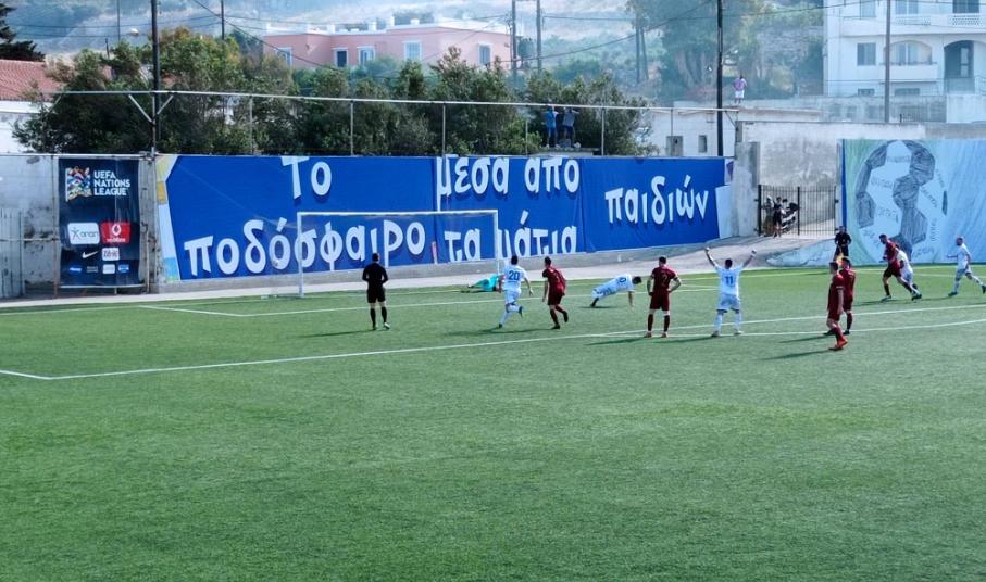 31΄ ο Ρέντζο έβγαλε με το κεφάλι πριν η μπάλα περάσει τη γραμμή του τέρματος του Καλογερόπουλου, με την Ελλάς Σύρου να φτάνει κοντά στο γκολ.