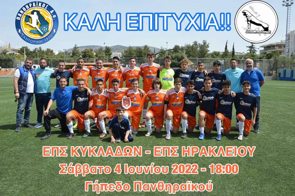 Το Σάββατο 4 Ιουνίου 2022 και ώρα 18:00 στο γήπεδο του Πανθηραϊκού, η μικτή ομάδα Κ17 της ΕΠΣ Κυκλάδων υποδέχεται την αντίστοιχη της ΕΠΣ Ηρακλείου, για την προημιτελική φάση του πανελλήνιου πρωταθλήματος προεπιλογής Εθνικών Ομάδων.