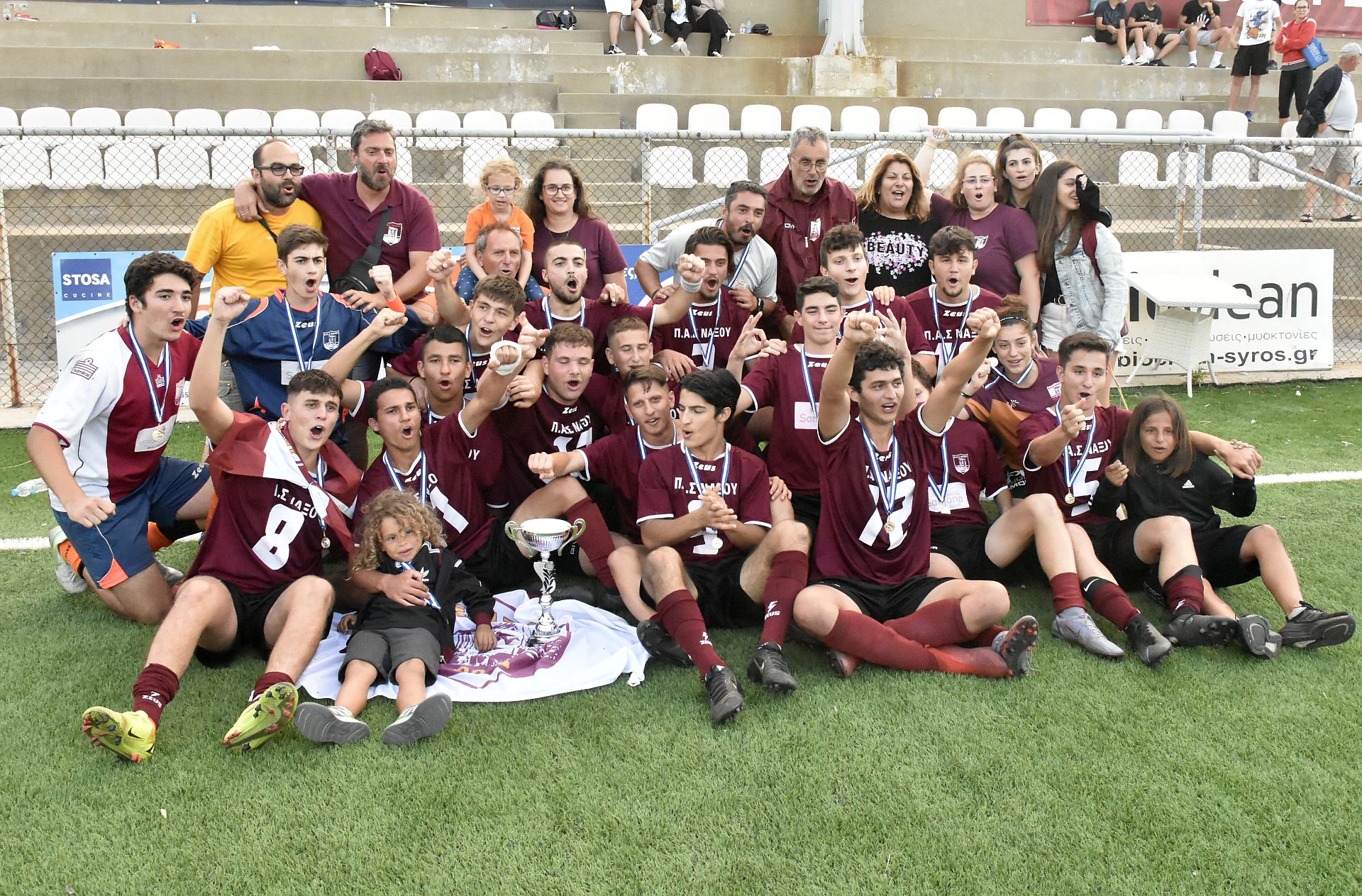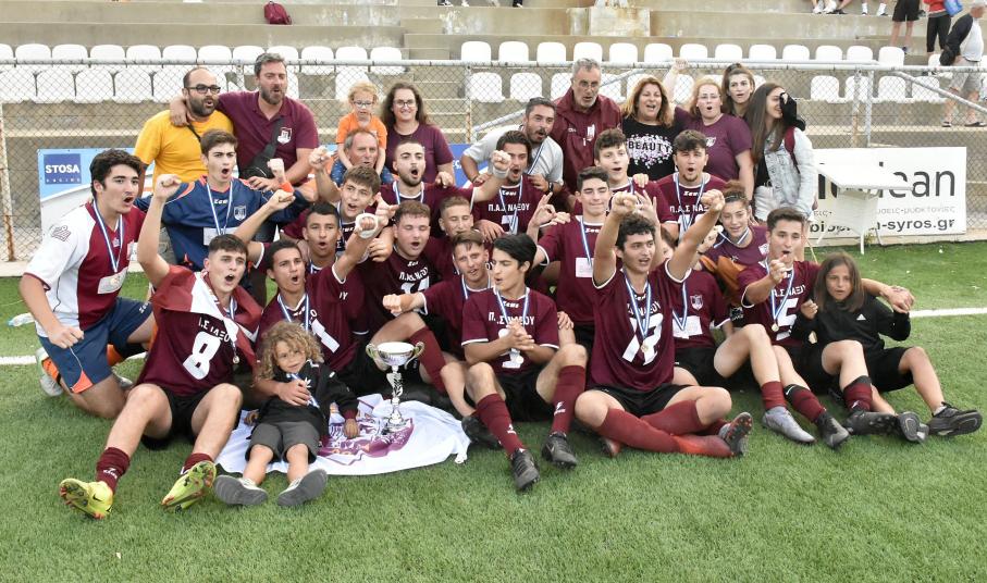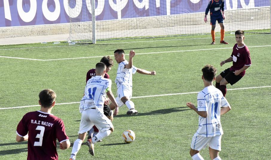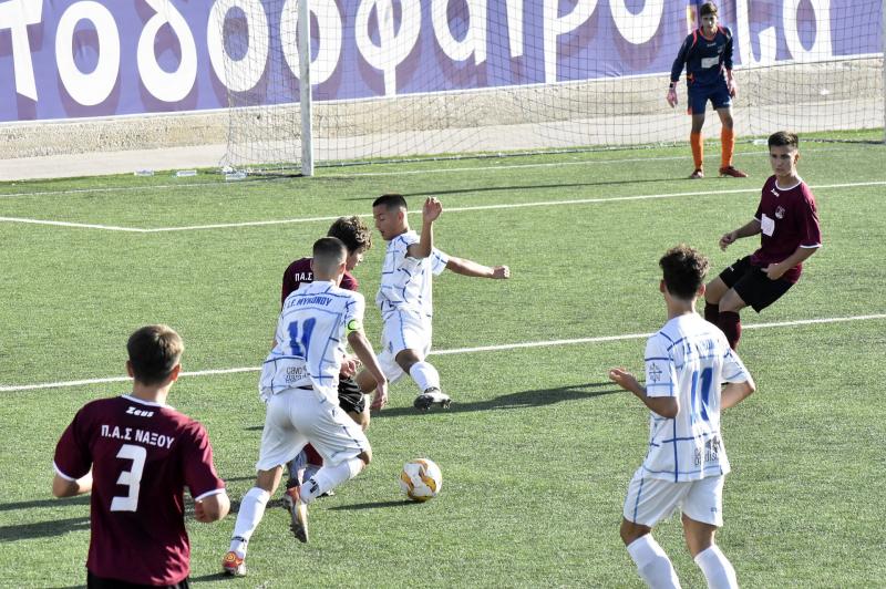 Ο ΠΑΣ Νάξου επικράτησε της ΑΕ Μυκόνου με 2-0 στον τελικό του πρωταθλήματος για την Κ18 και ανέβηκε στο υψηλότερο σκαλί του βάθρου. Ο τελικός πραγματοποιήθηκε στο γήπεδο της ΕΠΣ Κυκλάδων στην Ερμούπολη και όσοι βρέθηκαν στην εξέδρα είχαν την ευκαιρία να παρακολουθήσουν ένα πανέμορφο παιχνίδι. Οι δύο ομάδες έδειξαν πως βρίσκονται σε ένα πάρα πολύ καλό επίπεδο και πως τα παιδιά που αγωνίστηκαν ήταν κατάλληλα προετοιμασμένα. ΠΑΣ Νάξου και ΑΕ Μυκόνου ήταν πολύ κοντά αγωνιστικά η μία με την άλλη και ο νικητής κρίθηκε στις λεπτομέρειες. Ο ΠΑΣ Νάξου από την πλευρά του ευτύχησε να προηγηθεί στην πρώτη του καλή στιγμή στο παιχνίδι με τον Παντελαίο στο 5΄. Από εκεί και πέρα η ομάδα του Μάκη Πούλου ανέβασε ρυθμό και κατάφερε όχι μόνο να το ισορροπήσει, αλλά και να αναλάβει την πρωτοβουλία των κινήσεων για ένα μεγάλο χρονικό διάστημα. Έφτασε πολλές φορές κοντά στο γκολ, στάθηκε άτυχη στο 88΄ όπου είδε τη μπάλα, σε προσπάθεια του Λούλα, να σταματά στο δεξί κάθετο δοκάρι του Κουφόπουλου. Ο ΠΑΣ Νάξου αφού άντεξε την πίεση από πλευράς Μυκόνου, σε μία κόντρα επίθεση στο φινάλε ουσιαστικά του αγώνα διπλασίασε τα τέρματά του με τον Γιαννακόπουλο.