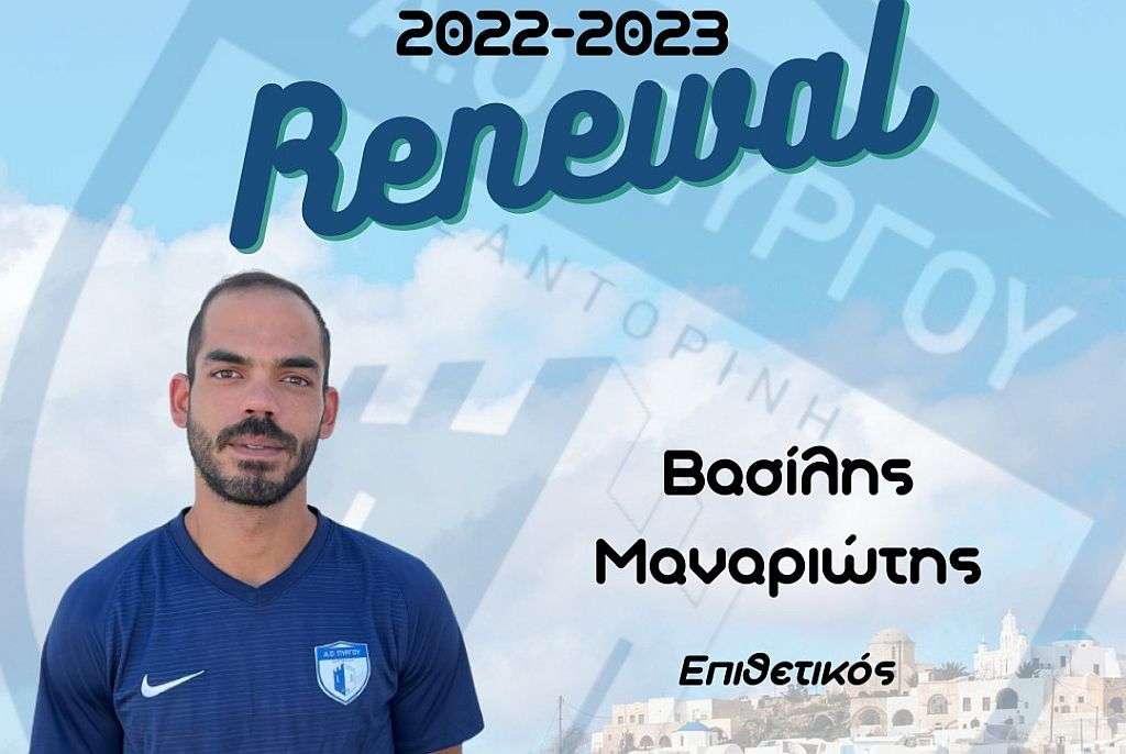 "Ο πρόεδρος και το διοικητικό συμβούλιο του ΑΟ Πύργου ανακοινώνουν την ανανέωση της συνεργασίας με τον Βασίλη Μαναριώτη.