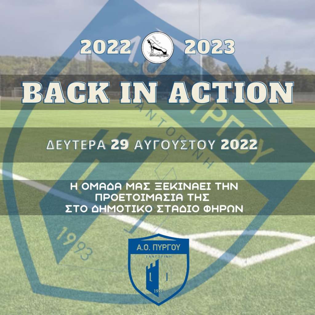 Την Δευτέρα 29 Αυγούστου στο γήπεδο των Φηρών θα ξεκινήσει η προετοιμασία της ομάδας μας ενόψει των αγωνιστικών υποχρεώσεων της αγωνιστικής σεζόν 2022-2023.