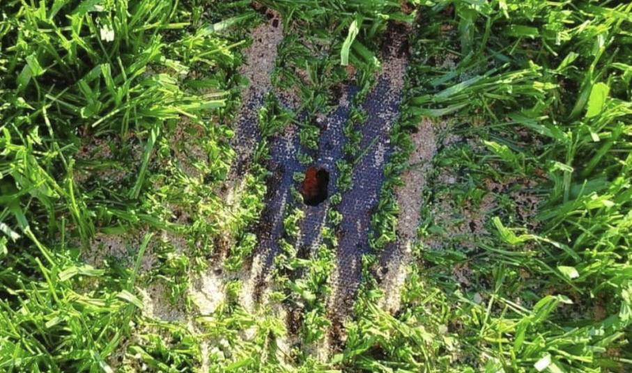 Συγκεκριμένα, μεταξύ χλοοτάπητα και εδάφους εμφανίστηκε πλήθος μυρμηγκιών, τα οποία εγκλωβίστηκαν από την τοποθέτηση του χλοοτάπητα και στην προσπάθειά διαφυγής τους οδήγησαν στην συγκέντρωση καουτσούκ κατά τόπους σε όλη την επιφάνια του γηπέδου. Οι ζημιές μπορεί να είναι μικρής κλίμακας, όμως παρουσιάστηκαν σε διάφορα σημεία του χλοοτάπητα, σε όλη του την έκταση. Σε ερώτηση προς τους αρμοδίους μας ενημέρωσαν πως αυτές οι ζημιές μπορούν εύκολα να αποκατασταθούν.