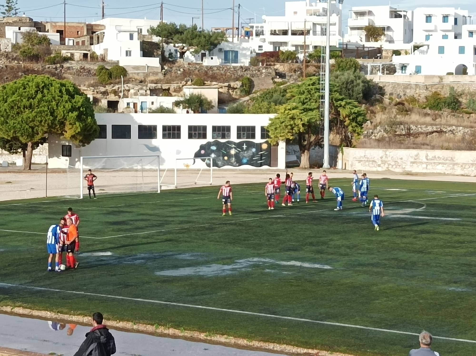 Η Ελλάς Σύρου με τον βαθμό που πήρε στη Μήλο παρέμεινε μόνη στην κορυφή της βαθμολογίας έχοντας σε τρεις αναμετρήσεις επτά βαθμούς. Τώρα, το ερχόμενο Σάββατο η ομάδα του Κώστα Παπαδόπουλου θα φιλοξενήσει την Α.Ε. Πάρου στο γήπεδο της Ερμούπολης.