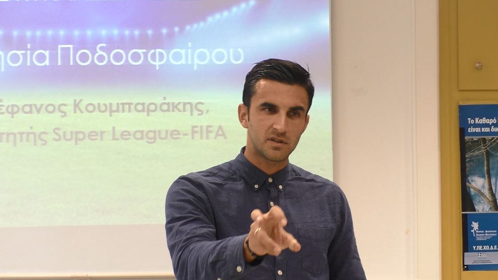 Με μαθητές του Λυκείου είχε την ευκαιρία να συνομιλήσει ο διεθνής Συριανός διαιτητής Στέφανος Κουμπαράκης. Ο Συριανός ρέφερι βρέθηκε στις αίθουσες του λυκείου μαζί με τον πρόεδρο της επιτροπής διαιτησίας της ΕΠΣ Κυκλάδων Λάμπρο Μενδρικό, για να μιλήσουν για την σχολή που θα πραγματοποιηθεί και στη Σύρο. Στόχος της επίσκεψης ήταν να βρεθούν παιδιά που να αγαπήσουν τη διαιτησία και στο άμεσο μέλλον να υπάρχουν νέοι διαιτητές στις Κυκλάδες. Από την πλευρά τους οι μαθητές είχαν την ευκαιρία να ρωτήσουν τον κ. Κουμπαράκη για όλα όσα αφορούν τόσο στο θέμα της διαιτησίας, όσο και πως είναι να διευθύνει τις μεγαλύτερες Ελληνικές ομάδες.