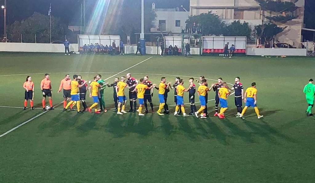 Τώρα όσον αφορά στο αγωνιστικό σκέλος της αναμέτρησης, η ομάδα του Αλέξη Κωστακόπουλου μπήκε δυνατά στον αγώνα κι από τα πρώτα λεπτά της αναμέτρησης κατάφερε να ελέγξει τον ρυθμό του αγώνα. Ο Πολυκρέτης στο 22΄ εκτέλεσε απευθείας φάουλ και ανάγκασε σε ασταθή απόκρουση τον Βασιλάρη. Στην επαναφορά της μπάλας ο Φίλων, με ωραίο πλασέ, νίκησε τον γκολκίπερ της Πάρου κι άνοιξε το σκορ για τους γηπεδούχους κάνοντας το 1-0.