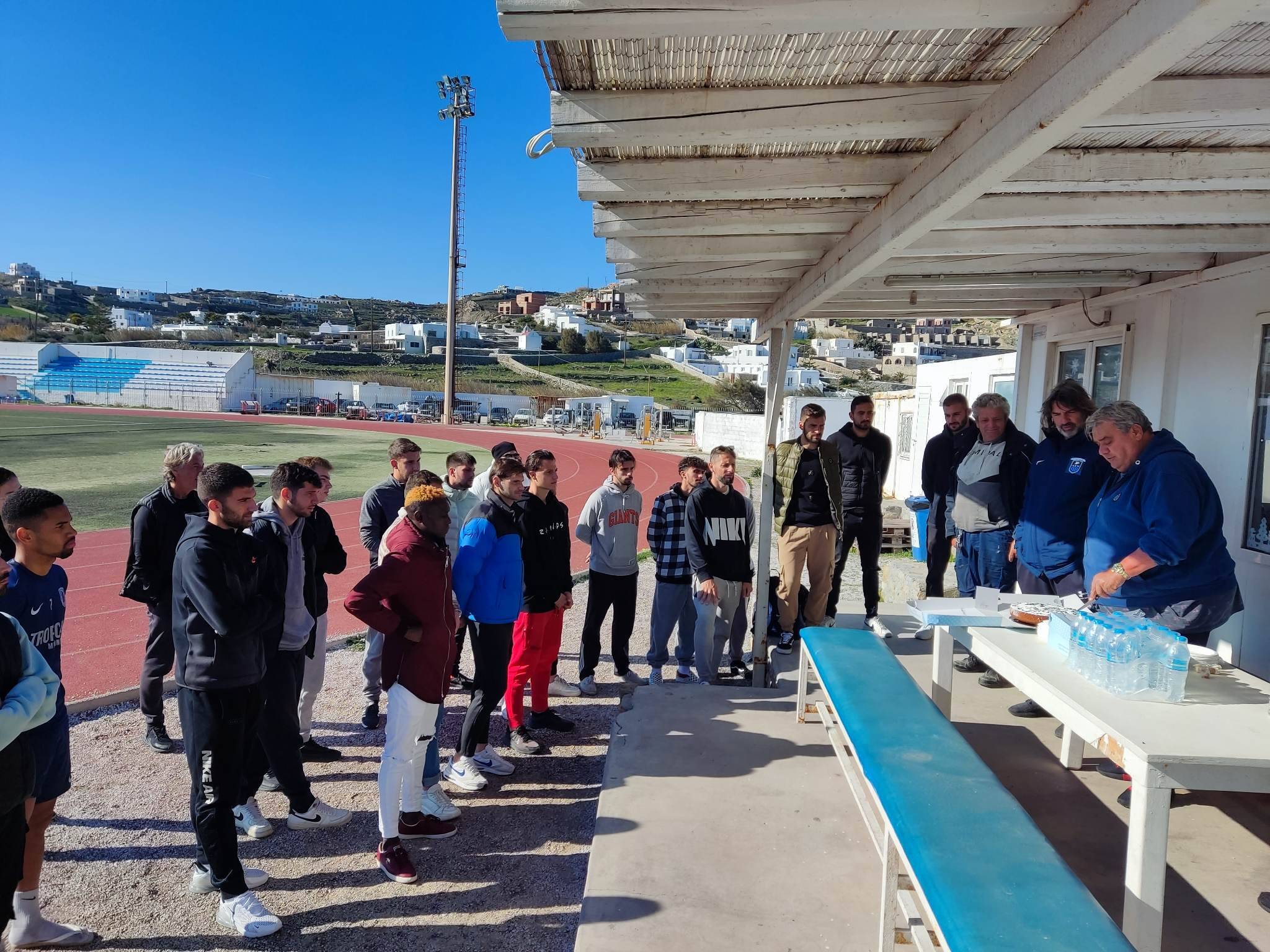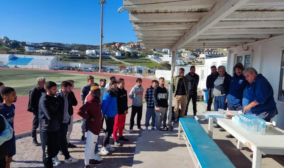 Σε ένα ζεστό κι άκρως οικογενειακό κλίμα η Α.Ε. Μυκόνου έκοψε την πρωτοχρονιάτικη πίτα της. Ο πρόεδρος και τα μέλη της διοίκησης βρέθηκαν στο γήπεδο του Κόρφου και μετά το τέλος της τελευταίας προπόνησης, μαζί με τους αθλητές και το τεχνικό επιτελείο, έκοψαν την πίτα της ομάδας.