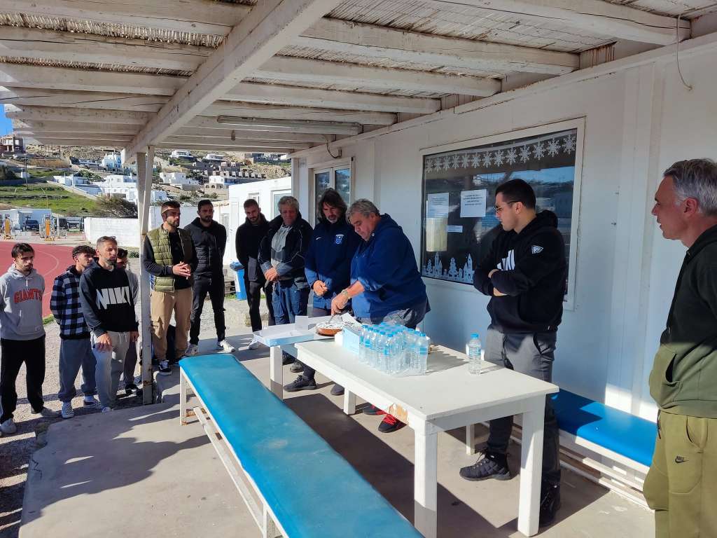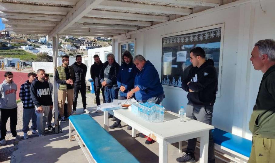 Ο πρόεδρος της ομάδας Αλέξανδρος Κουκάς ευχήθηκε σε παίκτες και τεχνικό τιμ να έχουν υγεία αλλά και πολλές επιτυχίες μέσα στο 2023 και στη συνέχεια προχώρησε στην κοπή της πίτας που είχε για τυχερό την τεχνική ηγεσία της ΑΕ Μυκόνου. Συγκεκριμένα το νόμισμα βρέθηκε ανάμεσα στα κομμάτια των Βαγγέλη Βλάχου και Θεοφύλακτου Παχατουρίδη.