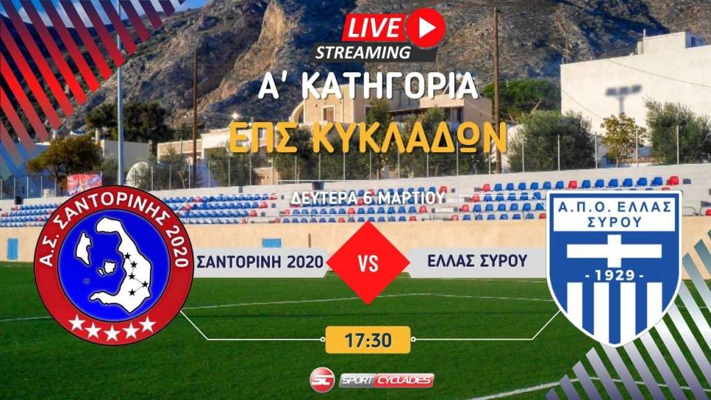Live stream: ΑΣ Σαντορίνης 2020 - Ελλάς Σύρου (A' Κατηγορία | 15η Αγωνιστική)