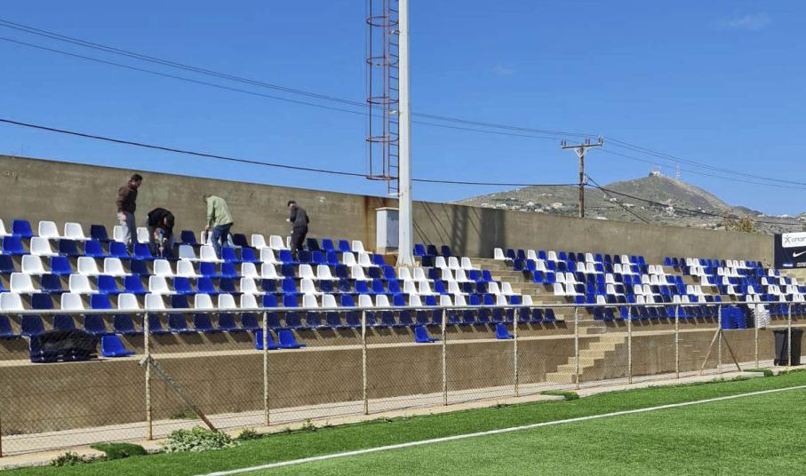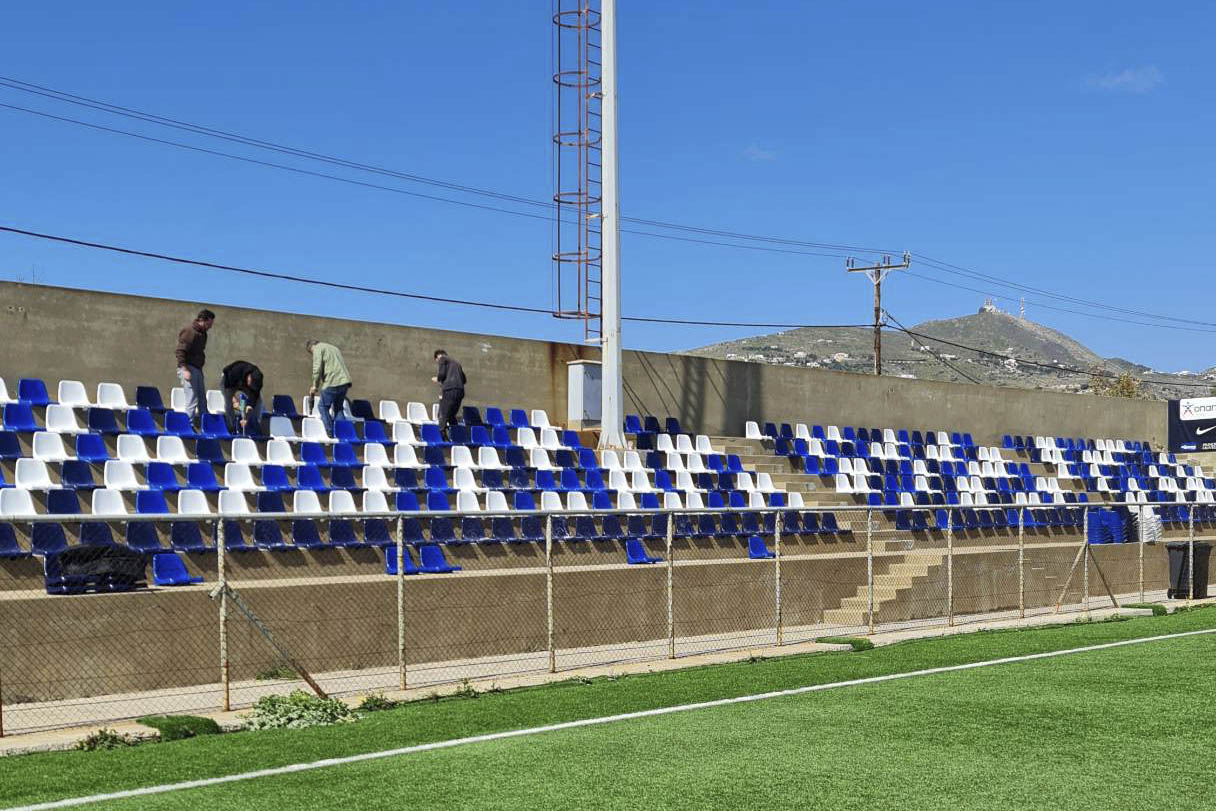 Αλλάζει το γήπεδο της Ερμούπολης καθώς από την πρώτη ημέρα τοποθέτησης των νέων καθισμάτων, η διαφορά είναι εμφανής. Στο παιχνίδι κυπέλου το ερχόμενο Σάββατο οι εργασίες αναμένεται να έχουν ολοκληρωθεί και οι φίλοι που θα βρεθούν στο γήπεδο θα έχουν την ευκαιρία να δουν την νέα του όψη.
