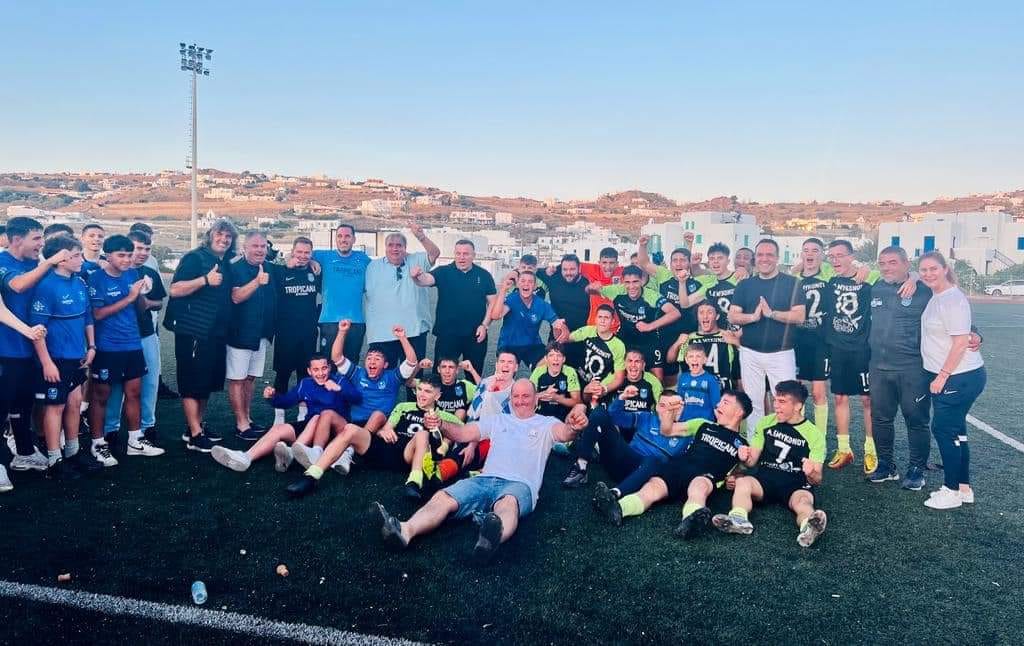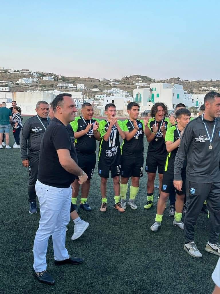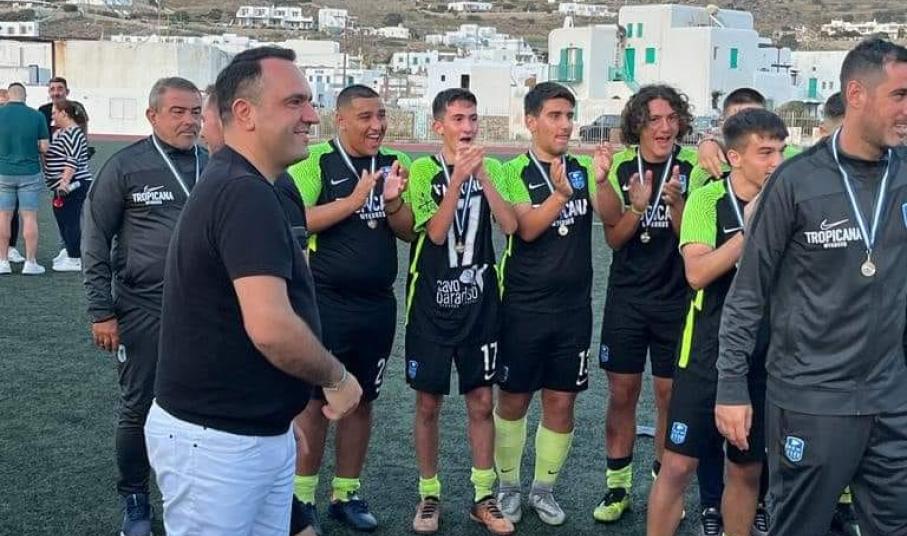 Η Α.Ε. Μυκόνου νίκησε στον τελικό της Κ16 τους Κανονιέρηδες Σύρου με 1-2 και κατέκτησε το πρωτάθλημα Κυκλάδων. Η ομάδα του Μάκη Πούλου εκμεταλλεύτηκε τα δύο γκολ που σημείωσε στο πρώτο δεκάλεπτο του δευτέρου ημιχρόνου κι έκλεισε με τον ιδανικότερο τρόπο την χρονιά.