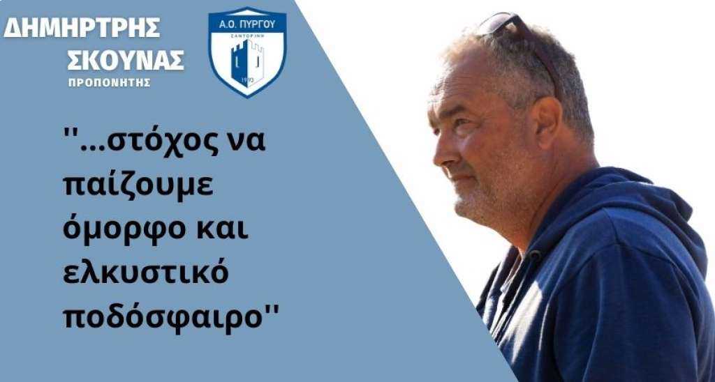 Έναν έμπειρο και με βαρύ βιογραφικό προπονητή βάζει στην άκρη του πάγκου της η ομάδα της Σαντορίνης. Η διοίκηση του Α.Ο. Πύργου τα βρήκε σε όλα με τον Δημήτρη Σκούνα και ο έμπειρος τεχνικός θα αναλάβει την… επανεκκίνηση της ομάδας της Σαντορίνης στο πρωτάθλημα της Α’ κατηγορίας.