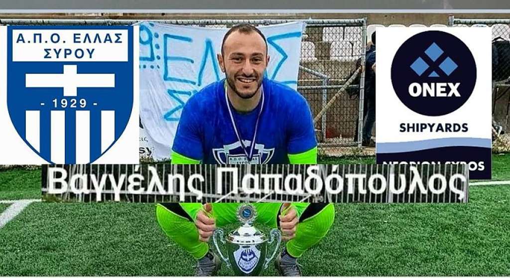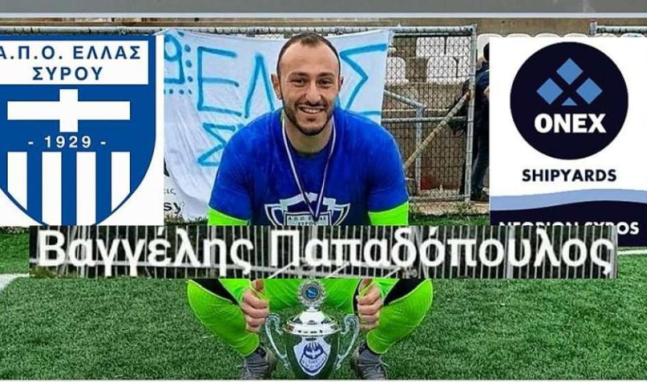 Το Διοικητικό συμβούλιο του Α.Π.Ο Ελλάς Σύρου βρίσκεται στην ευχάριστη θέση να ανακοινώσει την ανανέωση της συνεργασίας με τον ποδοσφαιριστή Βαγγέλη Παπαδόπουλο. Ο τερματοφύλακας της ομάδας μας πραγματοποίησε εξαιρετικές εμφανίσεις την περσινή χρονιά και θα αποτελέσει το τερματοφύλακα μας και φέτος στον δύσκολο δρόμο της Γ Εθνικής.
