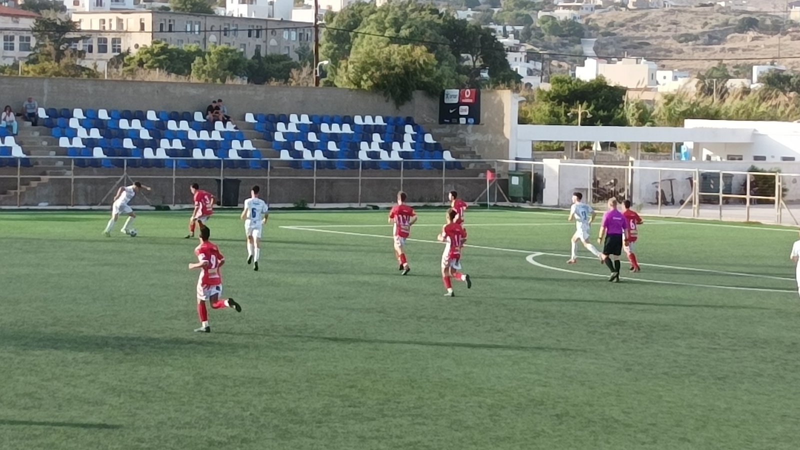 46’ τεράστια ευκαιρία για τους Συριανούς με τον Σκορδίλη, αφού αμυντικός της Μυκόνου έδιωξε τη μπάλα πάνω από τη γραμμή του τέρματος του Πολύζου.