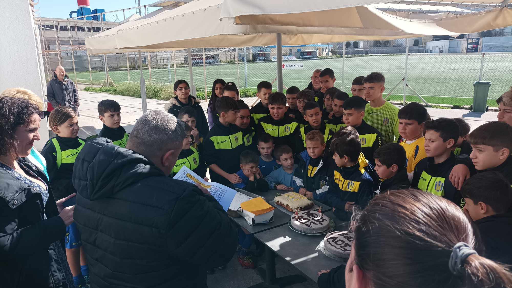 Ο προπονητής της ομάδας του Νέου Α.Ο. Σύρου Χρήστος Ζαχαρίου μίλησε στα παιδιά για τη σημασία του αθλητισμού και πόσο σημαντικό είναι οι αθλητές να ακούνε τους τεχνικούς τους.