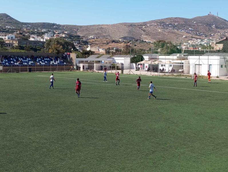 3’ ο νεαρός Ρούσσος με ωραία μπαλιά βρήκε τον Παυλόπουλο μέσα στην περιοχή, όμως ο φορ της ομάδας της Σύρου στάθηκε άτυχος καθώς είδε τη μπάλα να σταματά στο οριζόντιο δοκάρι της ομάδας της Κω.