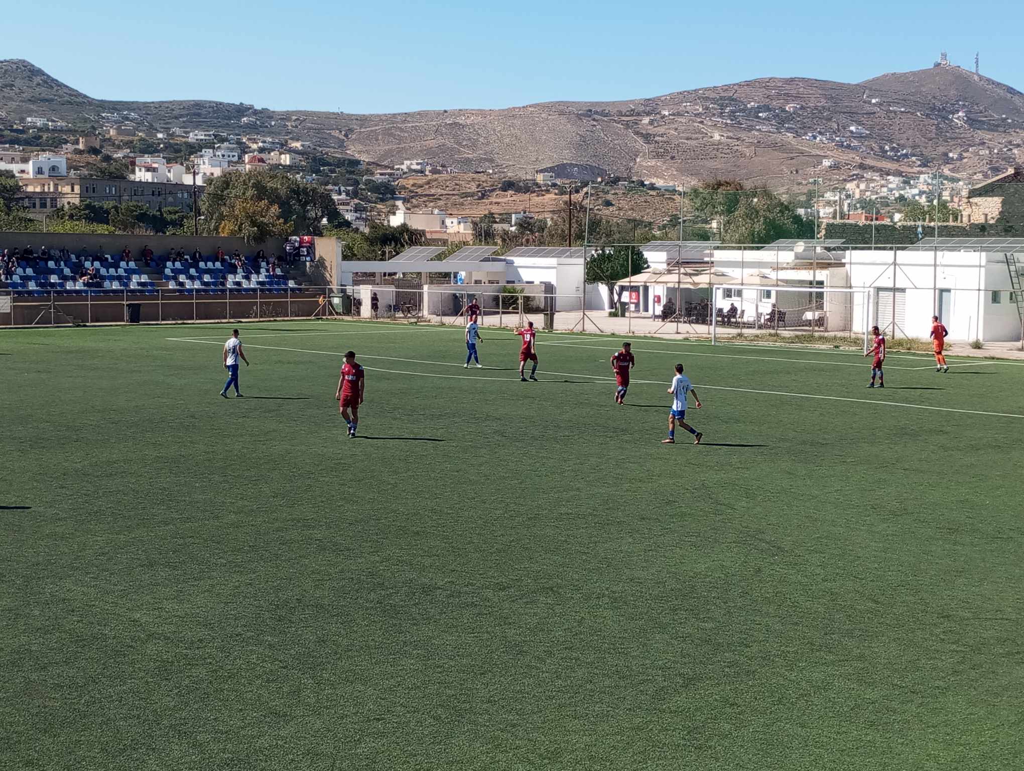 53’ ο Μούντριχας μετά την ωραία πάσα – ασίστ του Μελισσόπουλου άνοιξε το σκορ για λογαριασμό της Ελλάς Σύρου, κάνοντας το 1-0.
