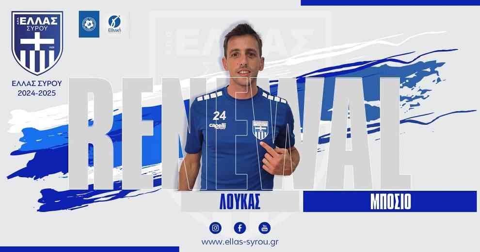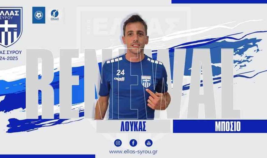 Το Δ.Σ του Α.Π.Ο Ελλάς Σύρου ανακοινώνει την ανανέωση της συνεργασίας με τον ποδοσφαιριστή Λούκας Μπόσιο.