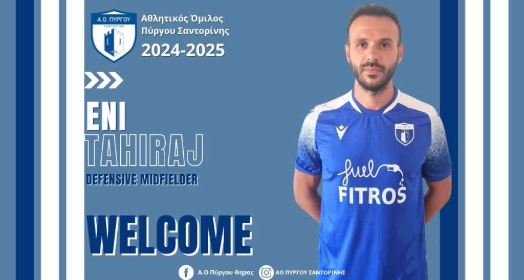 Ο Πρόεδρος και το Διοικητικό Συμβούλιο του ΑΟ Πύργου καλωσορίζουν τον Ένι Ταχιράι στην ομάδα και τη Σαντορίνη και του εύχονται καλή αγωνιστική χρονιά.