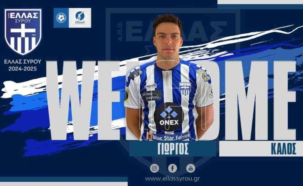 Η Διοίκηση της Ελλάς Σύρου ανακοινώνει την συνεργασία της με τον Γιώργο Καλό. Ο 20χρονος (5.2.2004) μεσοεπιθετικός έχει αγωνιστεί στην Κ17 και Κ19 του Παναθηναϊκού, ενώ την περσινή χρονιά αγωνίστηκε με την φανέλα του Ηλυσιακού έχοντας 29 συμμετοχές και 4 γκολ. Ο ταλαντούχος αριστερός εξτρέμ εκτός τα 1.386 λεπτά που έχει αγωνιστεί Super League Κ19 σε 29 παιχνίδια σημειώνοντας 5 γκολ, έχει στο βιογραφικό του και 4 συμμετοχές UEFA Youth League.