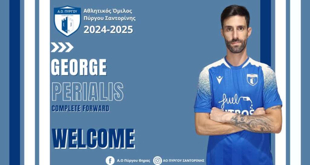 Η διοίκηση του Πύργου συνεχίζει την προσπάθεια ενίσχυσης του ρόστερ και μάλιστα προχώρησε σε μία κίνηση… ματ. Το συγκρότημα της Σαντορίνης ενέταξε στο δυναμικό της έναν ποδοσφαιριστή, ο οποίο είναι γνωστός για τις ικανότητές του. Ο Γιώργος Περιάλης είναι το νέο μεταγραφικό απόκτημα του Α.Ο. Πύργου, καθώς η διοίκηση της ομάδας τα βρήκε σε όλα με τον Τηνιακό ποδοσφαιριστή.