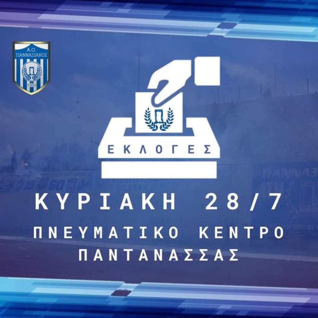 Το Δ.Σ. του Πανναξιακού Α.Ο. ανακοινώνει τη διεξαγωγή εκλογών για την ανάδειξη του νέου Διοικητικού Συμβουλίου, την Κυριακή 28 Ιουλίου 2024 στο Πνευματικό Κέντρο της Παντάνασσας.