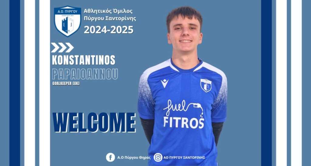 Ένα ακόμη πολύτιμο εργαλείο πρόσθεσε στο ενεργητικό του ο ΑΟ Πύργου, καθώς η διοίκησή της ομάδας της Σαντορίνης ανακοίνωσε τη συμφωνία της με τον νεαρό τερματοφύλακα, Κωνσταντίνο Παπαϊωάννου.