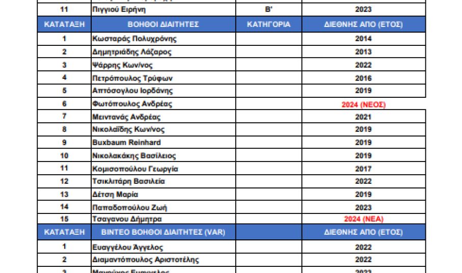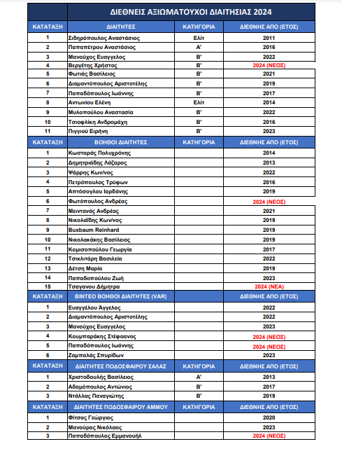 Να σημειώσουμε εδώ πως η Ελληνική Ποδοσφαιρική Ομοσπονδία ανακοίνωσε τους διεθνείς αξιωματούχους διαιτητές για τη σεζόν 2024. Στην ανανεωμένη λίστα υπάρχουν αρκετές αλλαγές και νέες προσθήκες. Αυτό γιατί διεθνής διαιτητής έγινε ο Χρήστος Βεργέτης, ενώ διεθνείς βοηθοί έγιναν οι Δήμητρα Τσαγανού και Ανδρέας Φωτόπουλος.
