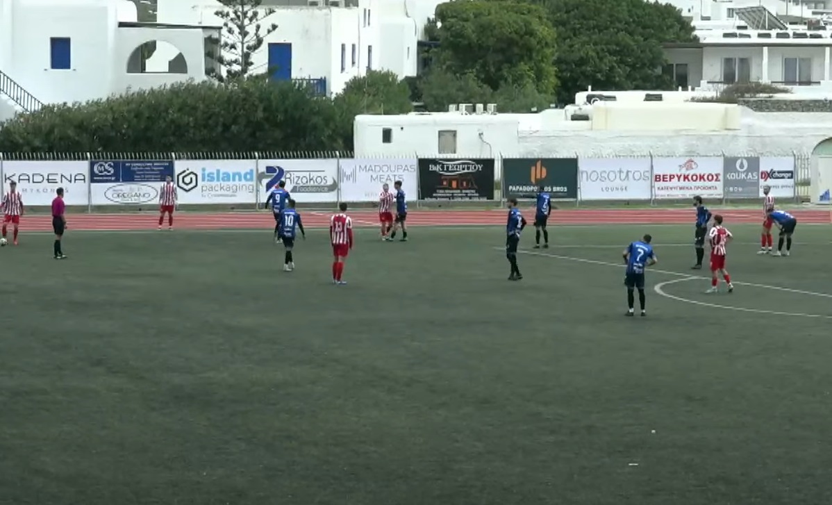 Οι φιλοξενούμενοι απάντησαν στις ευκαιρίες της Μυκόνου με το σουτ του Διάκου να περνά εκτός αγωνιστικού χώρου.