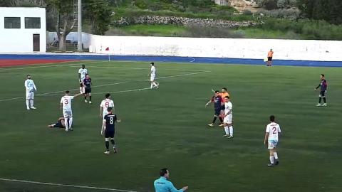 72’ μεγάλη διπλή ευκαιρία για την ομάδα της Μήλου, με τον Ρίζο να μην μπορεί να νικήσει τον Φαρμάκη.
