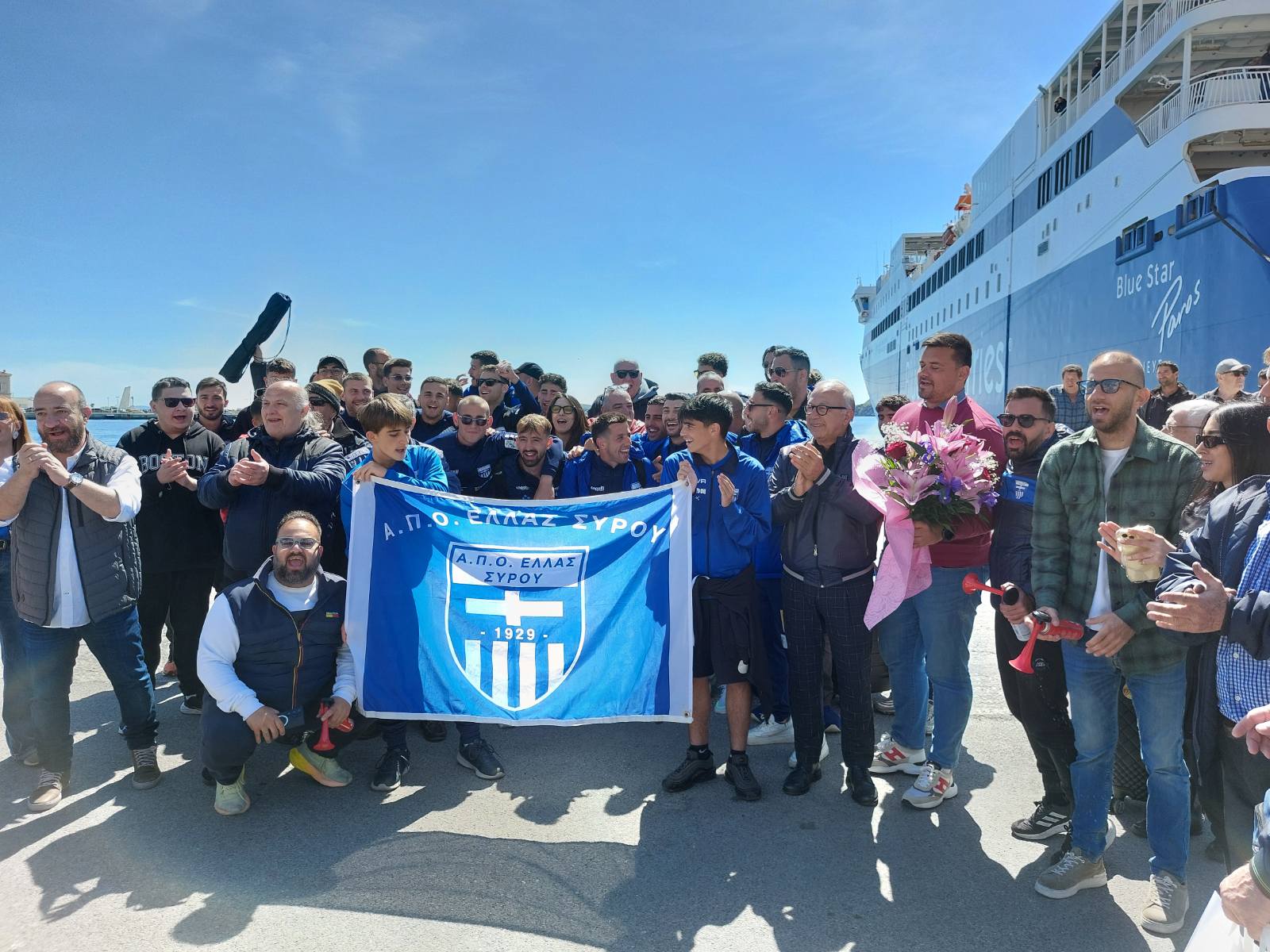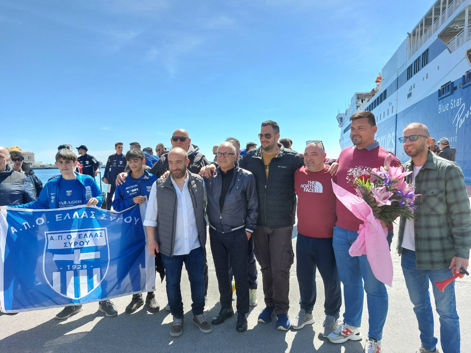 Στο λιμάνι εκτός από τους φίλους της ομάδας βρέθηκε και σύσσωμο το διοικητικό συμβούλιο, με επικεφαλή τον πρόεδρο της Ελλάς Νίκο Ζιάβρα.