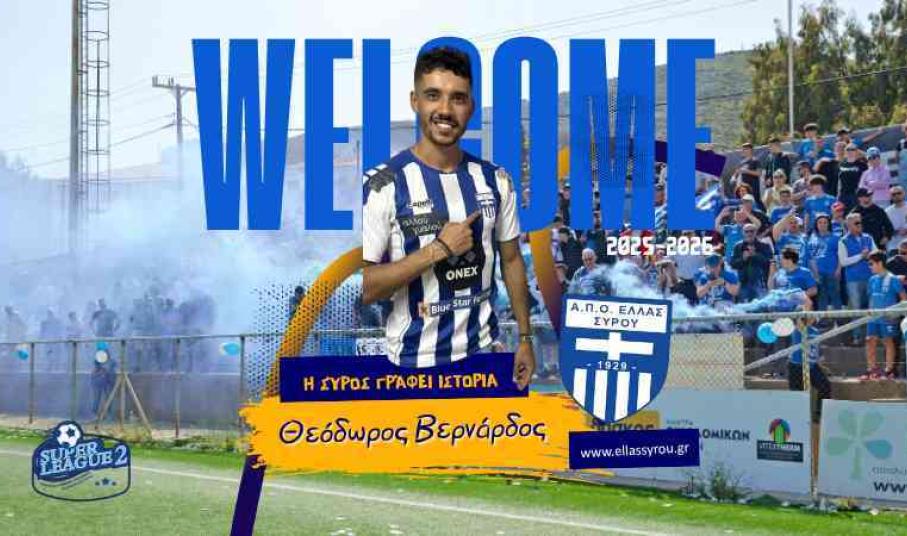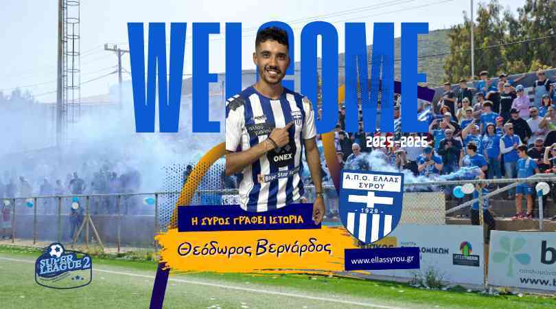 Με ιδιαίτερη χαρά καλωσορίζουμε στην οικογένεια της ΕΛΛΑΣ ΣΥΡΟΥ τον 28χρονο εξτρέμ Θοδωρή Βερνάρδο, έναν ποδοσφαιριστή με πλούσιο βιογραφικό και σημαντική εμπειρία στις εθνικές κατηγορίες.