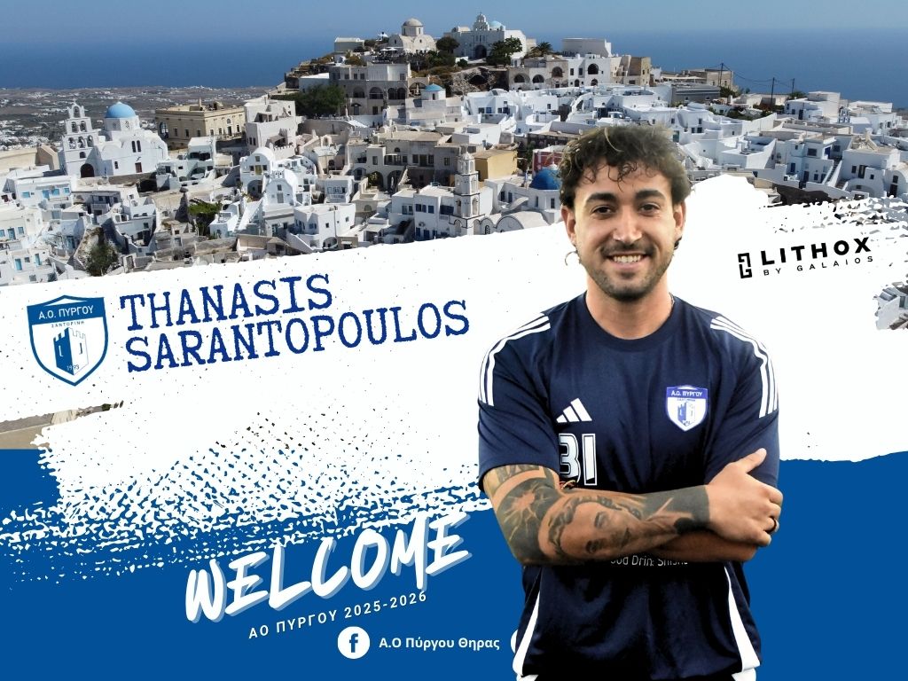 Μία ακόμη σπουδαία κίνηση προχώρησε ο Α.Ο. Πύργου, καθώς η διοίκηση της ομάδας της Σαντορίνης τα βρήκε σε όλα με τον Θανάση Σαραντόπουλο. Το νέο μεταγραφικό απόκτημα της ομάδας της Σαντορίνης έχει τεράστια εμπειρία τόσο από το πρωτάθλημα της Super League 2, όσο κι από τη Γ΄ εθνική κατηγορία.