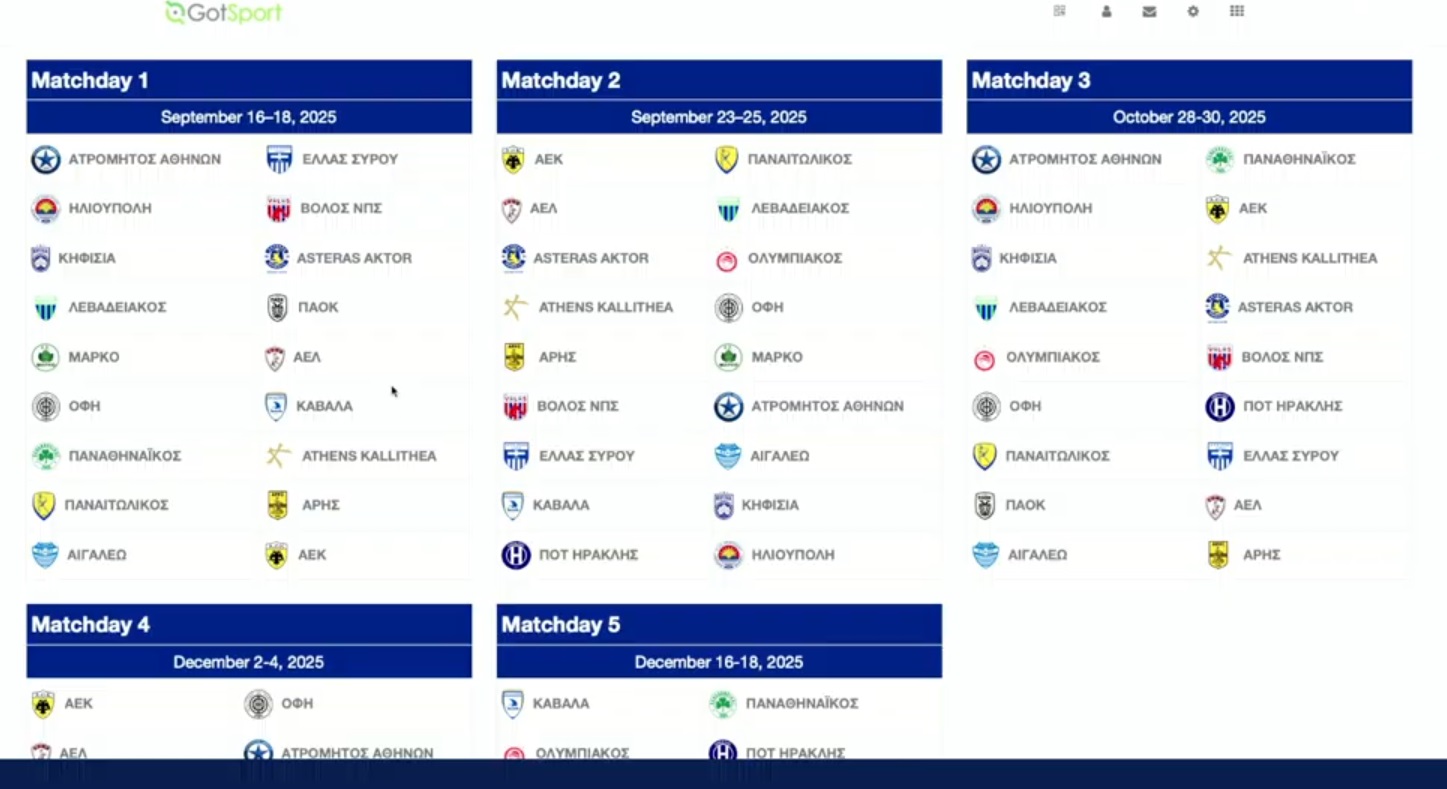 Η Ελλάς Σύρου την τέταρτη αγωνιστική θα υποδεχτεί τον Ολυμπιακό, με το παιχνίδι αυτό να είναι ορισμένο στις 2 – 4 Δεκεμβρίου.