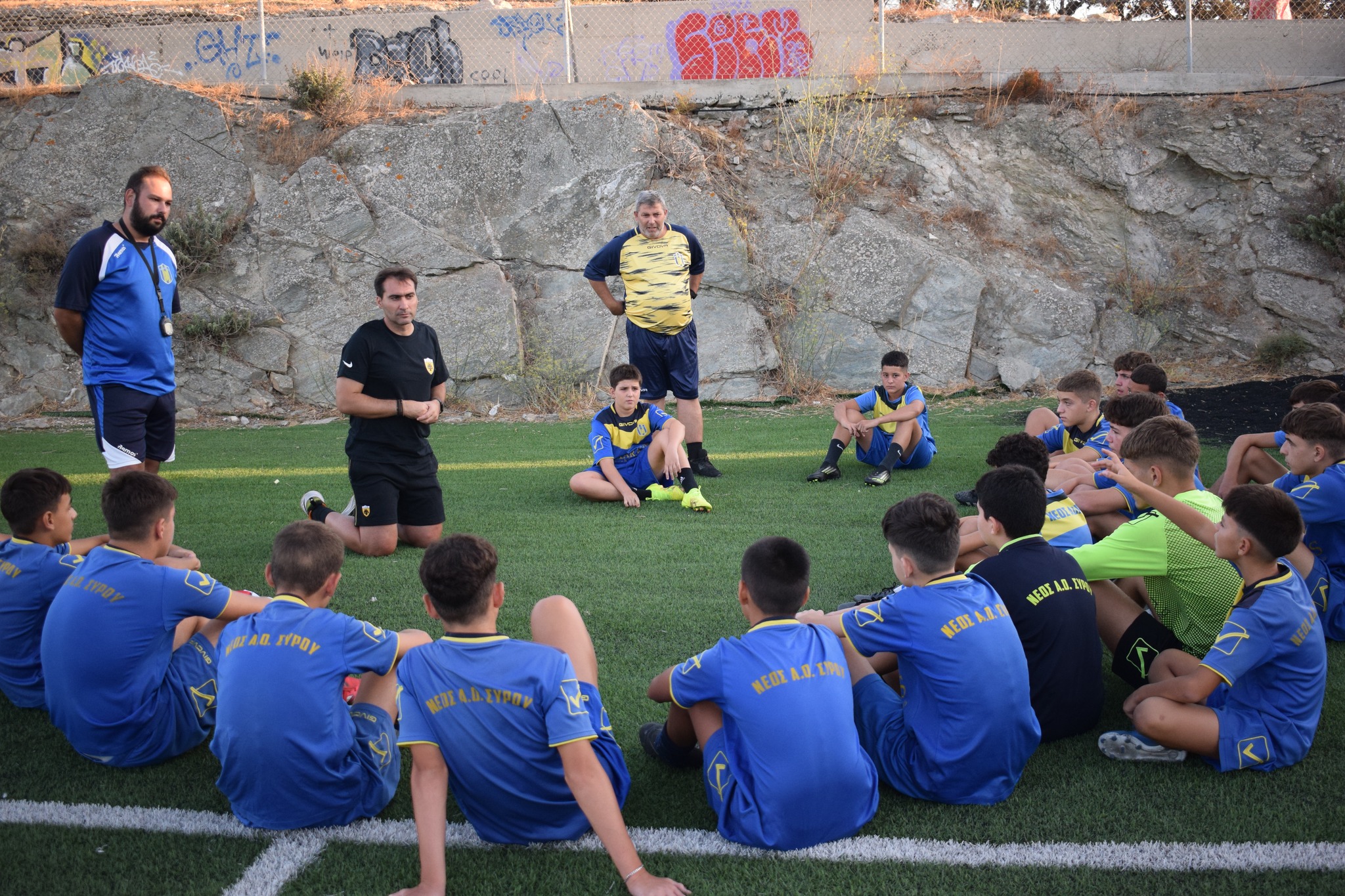 Ο κ. Κυριακίδης είδε από κοντά τις προπονήσεις της Κ14 και της Κ16 του Νέου Α.Ο. Σύρου και μίλησε με τα παιδιά.