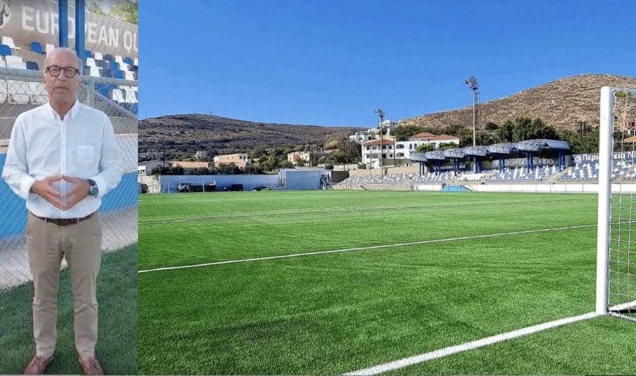Στη συνέχεια, σε βίντεο που ανέβασε στα μέσα κοινωνικής δικτύωσης επισημαίνει πως "μέσα σε ελάχιστο χρόνο κάναμε τόσα πολλά πράγματα. Αύριο ξεκινά αυτό το ονειρικό ποδοσφαιρικό ταξίδι, όπου θα το ζήσουμε όλοι μαζί. Αύριο γράφεται ιστορία, καθώς είναι το πρώτο επίσημο παιχνίδι που ομάδα από τις Κυκλάδες θα παίξει επαγγελματικό παιχνίδι στο θεσμό του League Phase του κυπέλλου Ελλάδος. Θέλω να ευχαριστήσω τον περιφερειάρχη Γιώργο Χατζημάρκο, τον προϊστάμενο των Τεχνικών Υπηρεσιών της Περιφέρειας Νοτίου Αιγαίου, αλλά και όλους όσους συνέβαλαν για να πραγματοποιηθεί αυτό το έργο. Είναι ένα έργο που πρωτίστως είναι αφιερωμένο στην νεολαία του νησιού γιατί είναι μία υποδομή που θα αφήσουμε για πολλά χρόνια. Ταυτόχρονα είναι μία υποδομή που εδώ στη Σύρο θα μπορούμε να φιλοξενήσουμε αγώνες υψηλού επιπέδου".