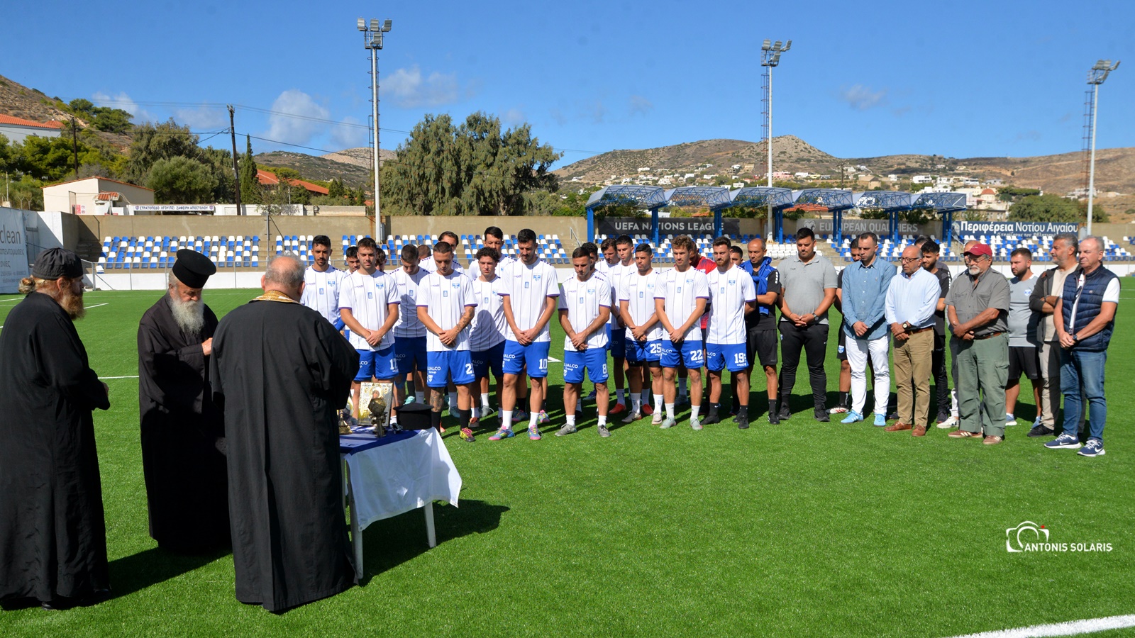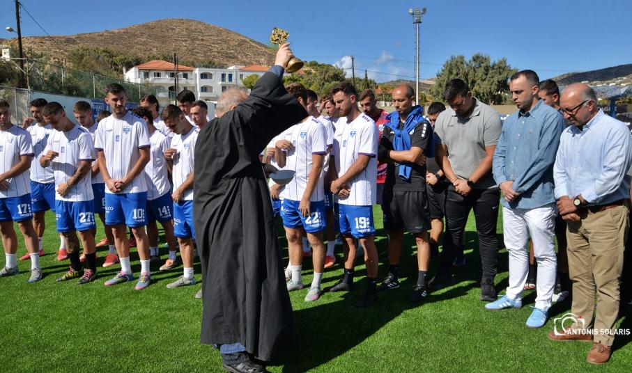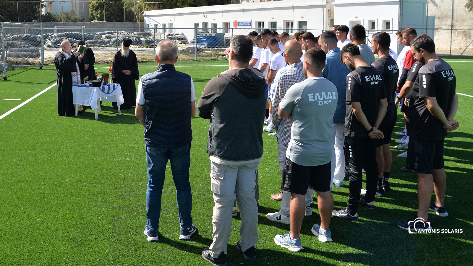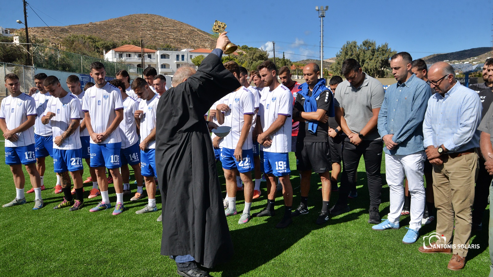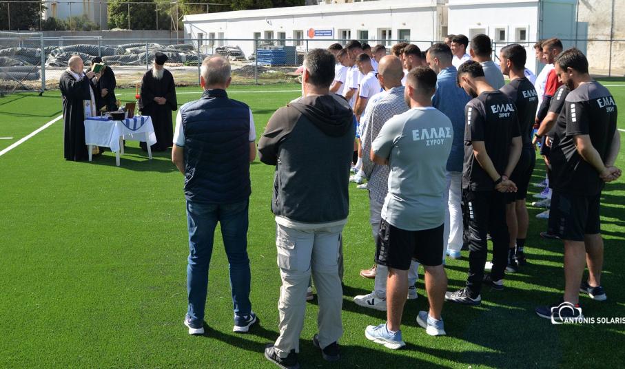 Σε κλίμα συγκίνησης και αισιοδοξίας τελέστηκε ο αγιασμός της ομάδας Α.Π.Ο. ΕΛΛΑΣ Σύρου στο γήπεδο της Ερμούπολης, παρουσία του προέδρου της ομάδας Γιώργου Λεονταρίτη, μελών της διοικούσας επιτροπής, των παικτών και του προπονητικού τιμ.