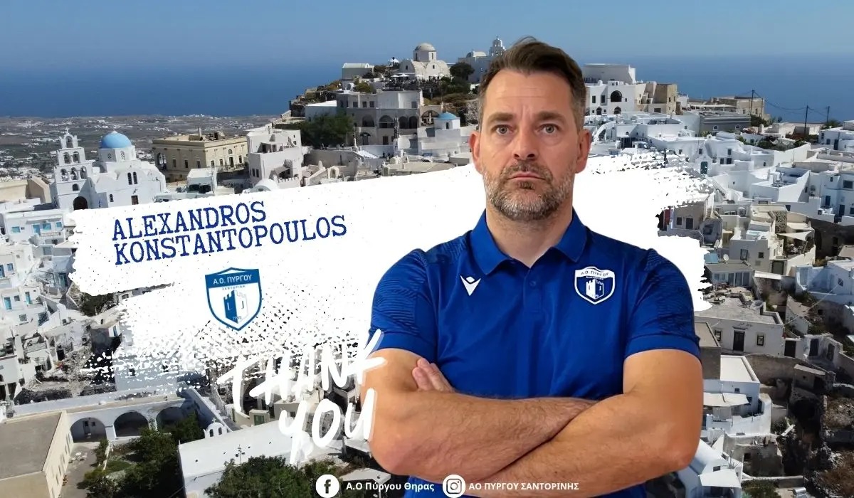 Θα πρέπει να σημειώσουμε εδώ πως ο κ. Κωνσταντόπουλος αποχώρησε μόνο από την ανδρική ομάδα, καθώς παραμένει ως διευθυντής της Σχολής Ποδοσφαίρου Ολυμπιακού Σαντορίνης – Ακαδημία Α.Ο. Πύργου, όπου και είχε συμβάλει καθοριστικά στη δημιουργία και εξέλιξης της ακαδημίας.