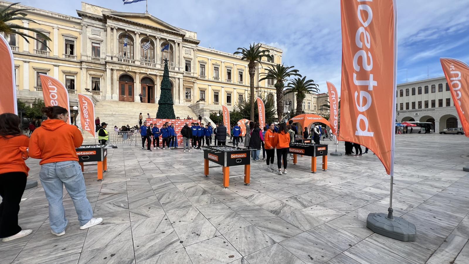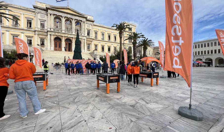 Από νωρίς ξεκίνησε η γιορτή του ποδοσφαίρου, καθώς το κύπελλο Betsson κόσμησε την πλατεία Μιαούλη. Ο κόσμος της Σύρου είχε την ευκαιρία από νωρίς να βρεθεί στην κεντρική πλατεία του νησιού και να δει από κοντά το βαρύτιμο τρόπαιο, το οποίο θα το σηκώσει ο νικητής του θεσμού.