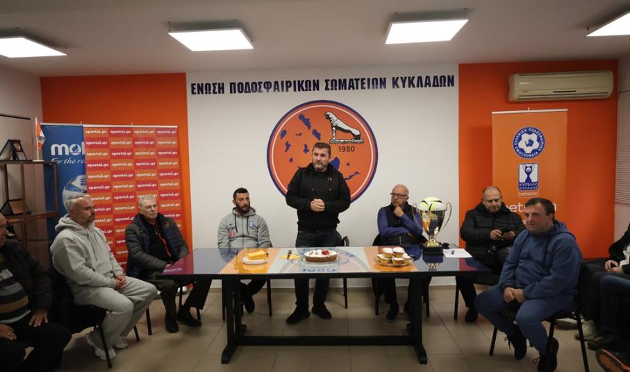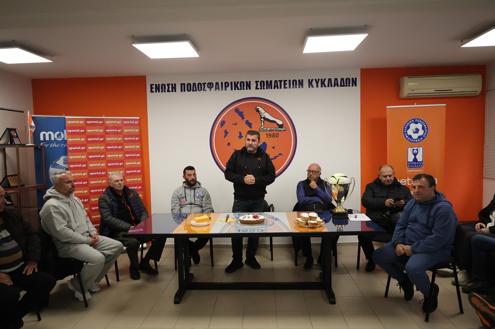 Η ΕΠΣ Κυκλάδων κατά τη διάρκεια της κλήρωσης της Β’ φάσης του πρωταθλήματος της Α’ κατηγορίας Κυκλάδων, έκοψε και την πρωτοχρονιάτικη πίτα της, παρουσία των Συριανών Σωματείων.