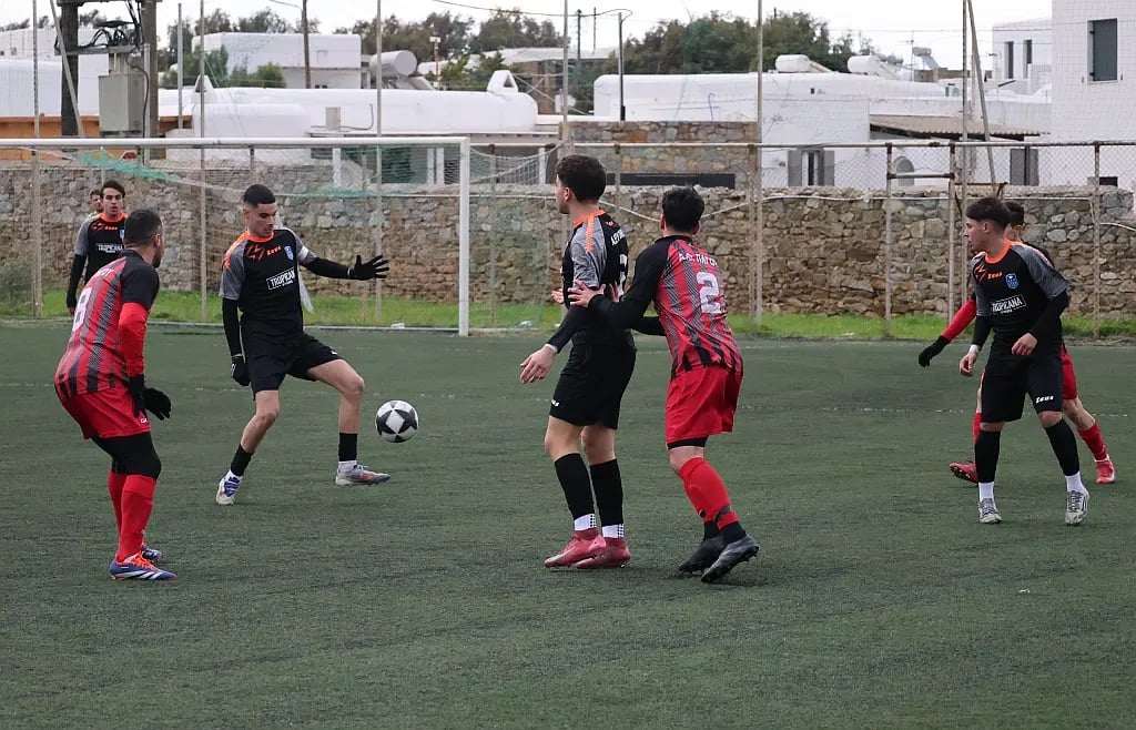 Από την άλλη πλευρά, οι νεαροί αθλητές της ομάδας της Μυκόνου κατάφεραν να φέρουν αντίσταση για 45 λεπτά, καθώς το 0-1 σημειώθηκε με τη συμπλήρωση του πρώτου ημιχρόνου, με τον Παυλόπουλο σε ένα κομβικό σημείο να δίνει το προβάδισμα στην ομάδα του (0-1).