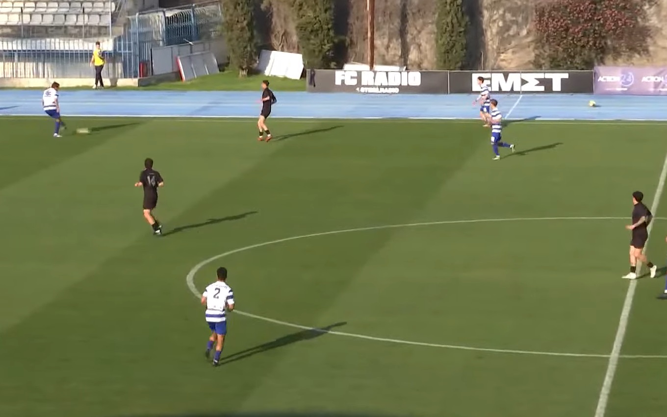 44’ κεφαλιά άουτ του Βασιλόγιαννη μετά τη σέντρα του Βάρκα.