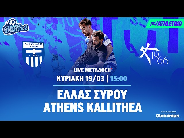 Την Κυριακή (19/04) μπορείτε να παρακολουθήσετε από το YouTube του Athletiko ζωντανά και αποκλειστικά το Ελλάς Σύρου - Athens Kallithea για τα playouts του Β' ομίλου της Super League 2 το οποίο θα ξεκινήσει στις 15:00.