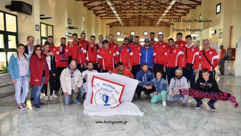 Η ομάδα του Φοίνικα Σύρου αναχώρησε την Τετάρτη το πρωί από το αεροδρόμιο της Σύρου με αρχικό προορισμό το Ε΄. Βενιζέλος, από εκεί με νέα πτήση θα μεταβεί στη Θεσσαλονίκη, όμως στο αεροδρόμιο της Σύρου τους περίμενε μία ευχάριστη έκπληξη, αφού μέλη της λέσχης φίλων Φοίνικα, βρέθηκε νωρίς το πρωί στην αίθουσα αναμονής του αεροδρομίου για να ενισχύσει και να εμψυχώσεις την αποστολή του “Πειρατικού”. Κανείς δεν γνώριζε την κίνηση των μελών της λέσχης και όταν οι παίκτες τους αντίκρισαν ένιωσαν μεγάλη χαρά και ικανοποίηση. Αυτό άλλωστε φάνηκε και στις μετέπειτα δηλώσεις που έκαναν, καθώς υποσχέθηκαν πως θα δώσουν το εκατό τις εκατό των δυνατοτήτων τους για να φτάσουν στη νίκη και την ισοφάριση της σειράς των τελικών. Από εκεί και πέρα η αποστολή της ομάδας αν και είχε ξυπνήσει νωρίς ήταν ευδιάθετη και με καλή ψυχολογία και παράλληλα υπήρχε πίστη για νίκη στη Θεσσαλονίκη. Ο Φοίνικας μετά την επικράτησή του στην πρωτεύουσα των Κυκλάδων μείωσε σε 1-2 και μπήκε και πάλι στο... κόλπο του τίτλου. Στη Θεσσαλονίκη θέλει μόνο νίκη ώστε να επιστρέψει στο νησί για τον πέμπτο τελικό. Αγωνιστικά προβλήματα δεν υπάρχουν, ο Ντόκιτς ο οποίος είχε κάποια μικροπροβλήματα αναμένεται να δώσει κανονικά το παρών και να βοηθήσει κι αυτός με τη σειρά του τον Φοίνικα για να φτάσει στο 2-2.