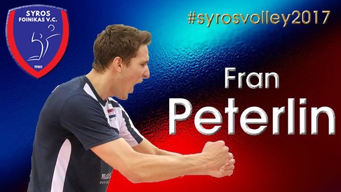 "Το Τ.Α.Α. Α.Ο. Φοίνικας Σύρου βρίσκεται στην ευχάριστη θέση να ανακοινώσει την απόκτηση ου διεθνή  Κροάτη Ακραίου Fran Peterlin  για την Αγωνιστική σαιζόν 2017-2018.
