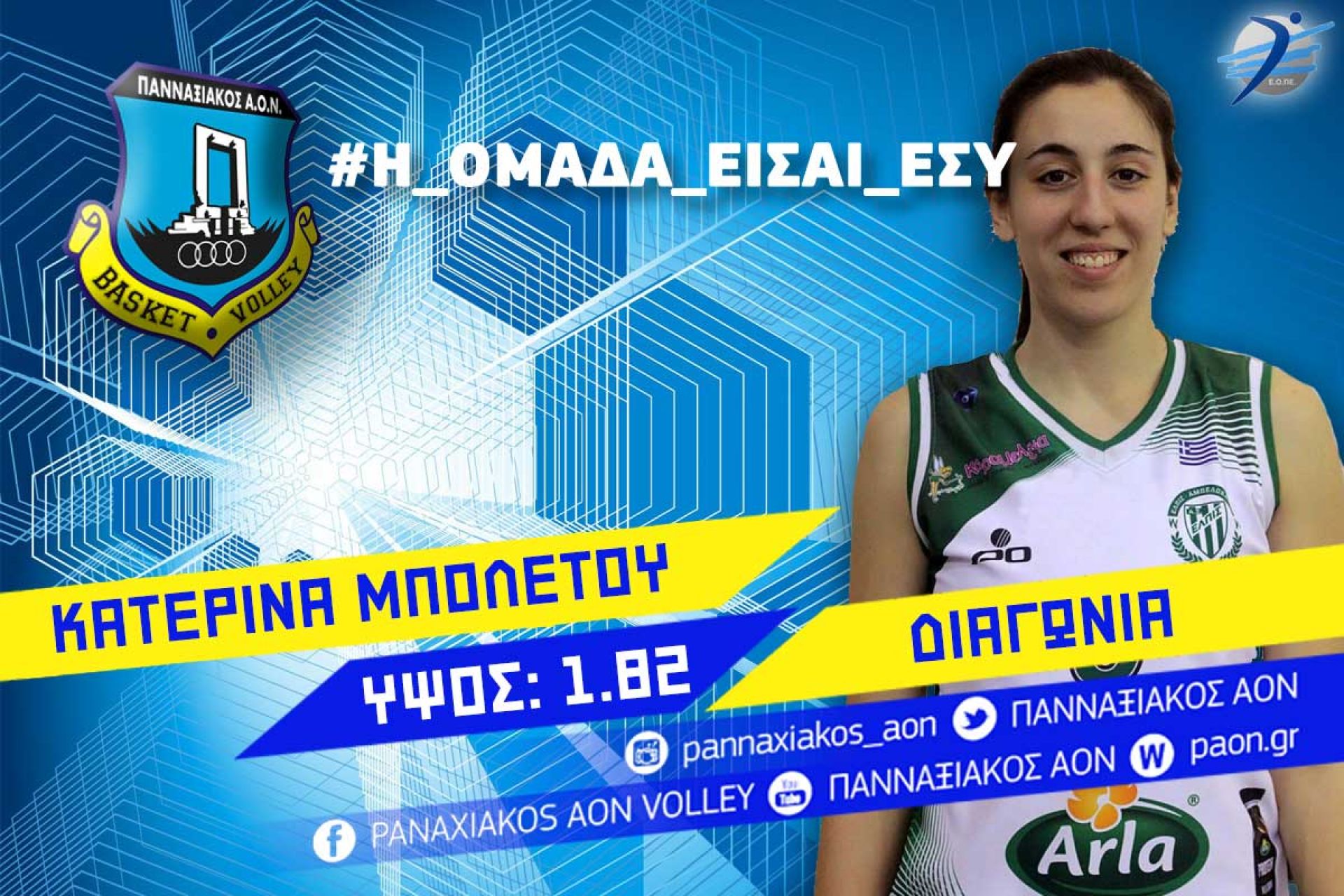 Καλωσορίζουμε την Κατερίνα Μπολέτου στην ομάδα μας και το νησί μας και είμαστε βέβαιοι ότι με την αγωνιστική της παρουσία θα συμβάλλει καταλυτικά στην προσπάθεια για την επιτυχία του Πανναξιακού στις εγχώριες διοργανώσεις και στην επίτευξη των στόχων της ομάδας μας.