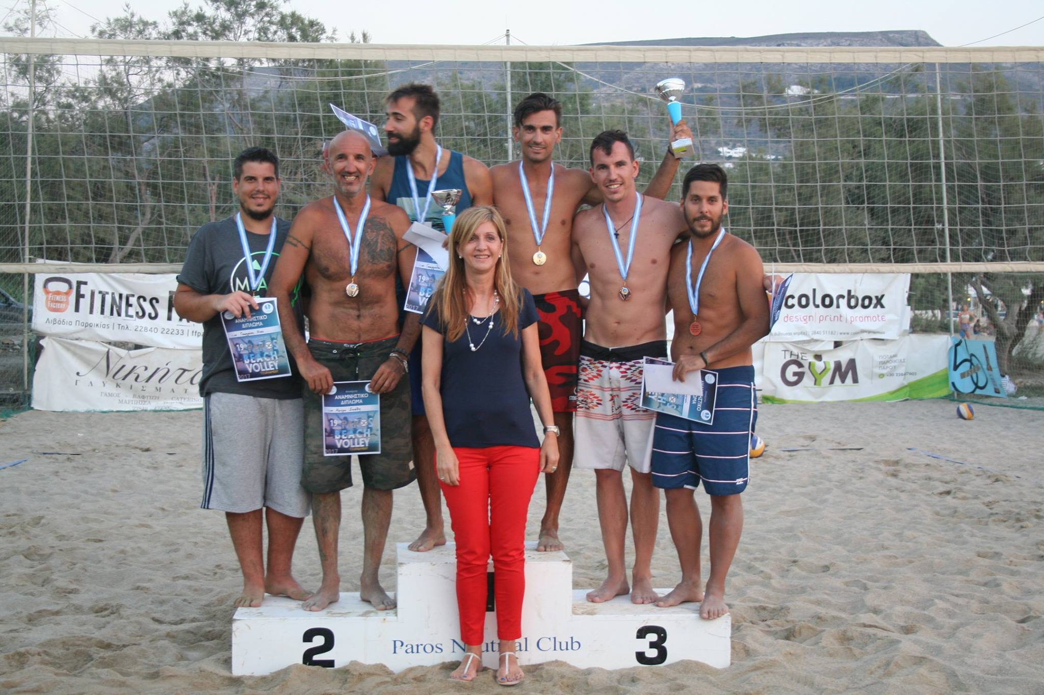 Τις απονομές στα τουρνουά ανδρών και γυναικών έκαναν η αντιδήμαρχος Δήμου Πάρου κα Σαρρή Δώρα, ο παγκόσμιος παρατηρητής διαιτησίας volley κος Καλπακτσόγλου Θέμης, ο πρόεδρος του Ν.Ο.Π. κος Πώλος Ελευθέριος, ο γραμματέας του Ν.Ο.Π. κος Ραγκούσης Ιωάννης και ο έφορος του τμήματος beach volley κος Καβάλης Μανώλης.