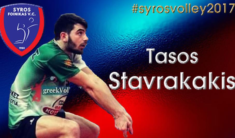 «Το Τ.Α.Α. Α.Ο. Φοίνικας Σύρου βρίσκεται στην ευχάριστη θέση να ανακοινώσει, την απόκτηση του Τάσου Σταυρακάκη για την αγωνιστική χρονιά 2017-2018. Ο 21χρονος Ακραίος/Λίμπερο έχει γεννηθεί την 12/7/1996 ,έχει ύψος 1.87m,και έχει αγωνιστεί στον Ηρακλή Θεσσαλονίκης 2011-2014 και την Ελπίδα Αμπελοκήπων 2014-2017. Επίσης είναι διεθνής με την U21 Εθνική ομάδα. Ο Πρόεδρος και το Δ.Σ καλωσορίζουν τον Τάσο Σταυρακάκη στην ομάδα μας και του εύχονται μία καλή σαιζόν με επιτυχίες».