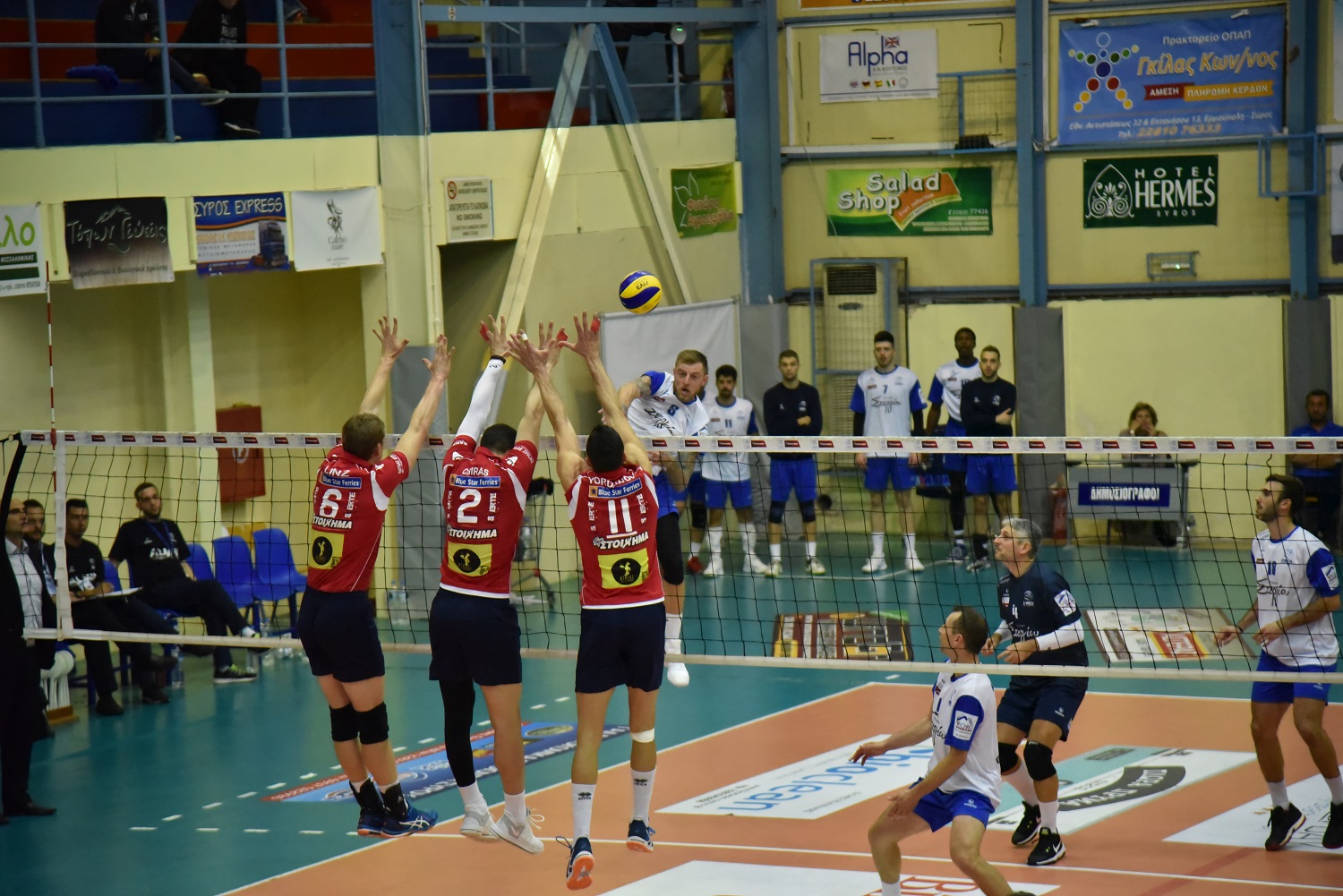 ΦΟΙΝΙΚΑΣ ΣΥΡΟΥ (Στεφάνοβιτς): Μαρούλης 2 (1/1 επ., 1 μπλοκ), Γιορντάνοφ 28 (26/48 επ., 2 άσσους), Λινζ 9 (8/22 επ., 1 άσσος, 35% υπ.-31% αρ.), Πέτερλιν 16 (12/27 επ., 1 άσσος, 3 μπλοκ, 34% υπ.-24% αρ.), Χήρας 7 (5/6 επ., 2 άσσους), Πεντίδης 4 (2/4 επ., 2 μπλοκ), Ζήσης (λ-55% υπ.-36% αρ.), Σούρδι 1 (1/1 επ., 50% υπ.-0% αρ.), Γάτσης (0/3 επ.), Σταυρακάκης.