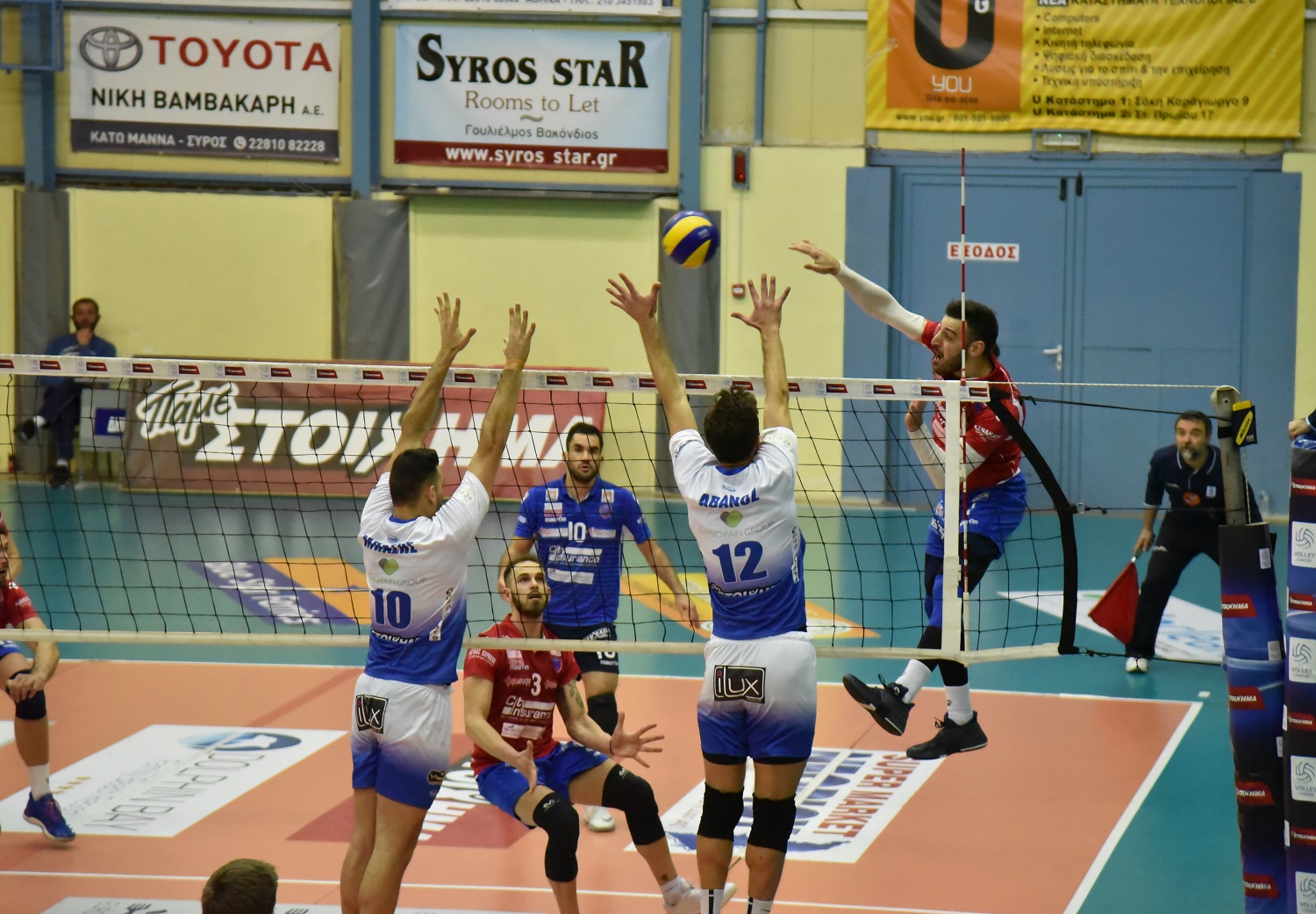 Οι φιλοξενούμενοι μπήκαν δυνατά στο ματς προηγήθηκαν με 0-2, 1-3 και 3-5. Στη συνέχεια πήραν με κόντρα μπάλα διαφορά ακόμη και τριών πόντων 3-6. Εκτός αγωνιστικού χώρου η προσπάθεια για επίθεση από τον Σούρδι και η διαφορά πήγε στον +4 για τον Εθνικό. Ο τεχνικός της ομάδας της Σύρου κάλεσε τάιμ άουτ, καθώς είδε την ομάδα του να μην ξεκινά καθόλου καλά το παιχνίδι. Το μπλοκ του Μπάση στον Γιορντάνοφ έφερε τη διαφορά στο +5 για τον Εθνικό και με το 3-8 οι φιλοξενούμενοι πήγαν στον πάγκο για το πρώτο τεχνικό τάιμ άουτ. Οι Πειραιώτες δείχνουν να μπορούν να κρατήσουν τη διαφορά πάνω από τους τέσσερις πόντους, αφού όσο κι αν προσπαθούν οι παίκτες του κ. Κάσμαρτσικ ο Εθνικός είναι σταθερά μπροστά. Εκτός αγωνιστικού χώρου η προσπάθεια του Πέτερλιν για το 7-13 και στο +6 ο Εθνικός. Με διαφορά τριών πόντων πήγε στους πάγκους για το δεύτερο τεχνικό τάιμ άουτ ο Εθνικός (13-16). Οι Συριανοί δεν μπήκαν… καθόλου στο σετ αφού ήταν συνεχώς πίσω, με τον Εθνικό να ελέγχει το σκορ και το σετ και να φτάνει σχετικά εύκολα στο 0-1 μετά το 19-25.