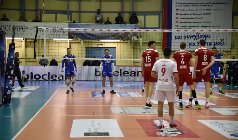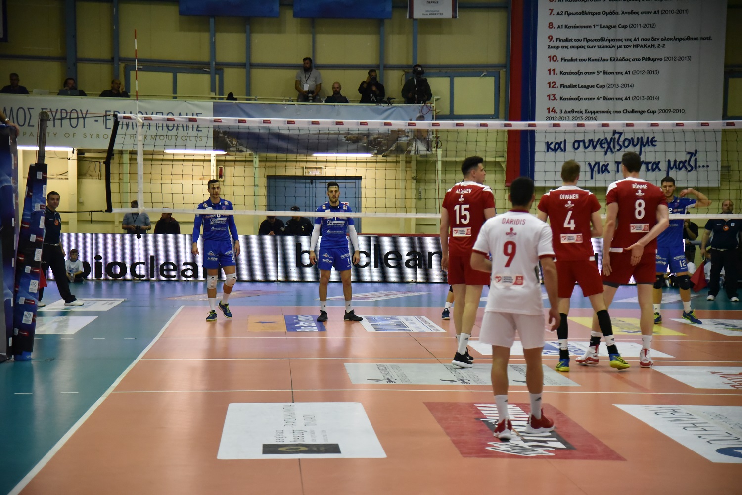Με τον καλύτερο δυνατό τρόπο ξεκίνησε ο Ολυμπιακός ο οποίος μπήκε από την αρχή στο σκορ προηγήθηκε αρχικά 1-4 και 3-6 με τον  κ. Κάσμαρτσικ να καλεί τάιμ άουτ. Ο Γιορντάνοφ έστειλε τη μπάλα άουτ και ο Ολυμπιακός πήγε στους πάγκους για το πρώτο τεχνικό τάιμ άουτ με το +4 (4-8).  Και στο δεύτερο μέρος οι ερυθρόλευκοι διατηρούσαν τον έλεγχο του ματς, όπου έβγαζαν δύσκολες άμυνες και ταυτόχρονα… χτυπούσαν στην κόντρα. Ο κ. Κάσμαρτικ πήρε γρήγορα το δεύτερο τάιμ άουτ που είχε δικαίωμα στο σετ, καθώς είδε τη διαφορά να αυξάνεται οι παίκτες του να μην μπορούν να αντιδράσουν. Με το +5 οι τυπικά φιλοξενούμενοι πήγαν στους πάγκους για το δεύτερο τεχνικό τάιμ άουτ. Οι Συριανοί γνώριζαν εξαρχής ότι είχαν δύσκολο και ο Ολυμπιακός τους το αποδεικνύει. Οι «ερυθρόλευκοι» πίεσαν πολύ από την γραμμή του σερβίς με αποτέλεσμα να χαλά συνεχώς η πρώτη μπάλα του Φοίνικα και σε πολλές περιπτώσεις ο Ολυμπιακός αποκτούσε το πλεονέκτημα.  Ο Γάτσης από το κέντρο πήρε δύο πόντους και έδωσε κάποιες… ανάσες στον Φοίνικα, αλλά ο Ολυμπιακός εξακολούθησε να είναι μπροστά με έξι πόντους (13-19). Ο Πετρέας με άσσο στη συνέχεια έκανε το 13-20 και ο Ολυμπιακός στο +7, σε ένα πολύ κρίσιμο σημείο. Ο Γιορντάνοφ με επίθεση στην κόντρα μείωσε σε 16-21. Ο Ολυμπιακός έφτασε σχετικά εύκολα σ’ αυτό το 0-1 μετά το 16-25 και έδειξε πως δύσκολα μπορεί να απειληθεί από τον Φοίνικα.